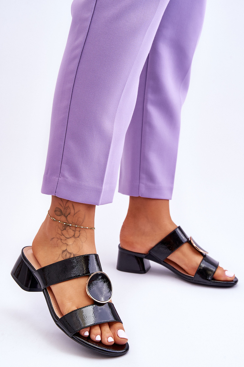 Eleganckie Klapki Na Obcasie Sergio Leone KL310 Czarne