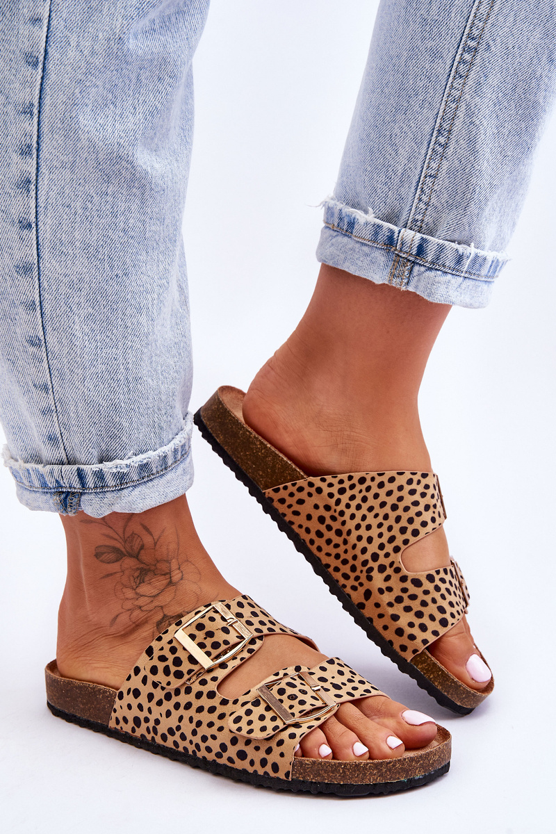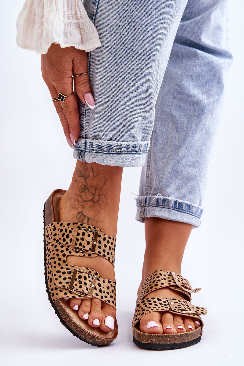 Damskie Klapki Wsuwane Leopard Beżowo-Czarne Destino