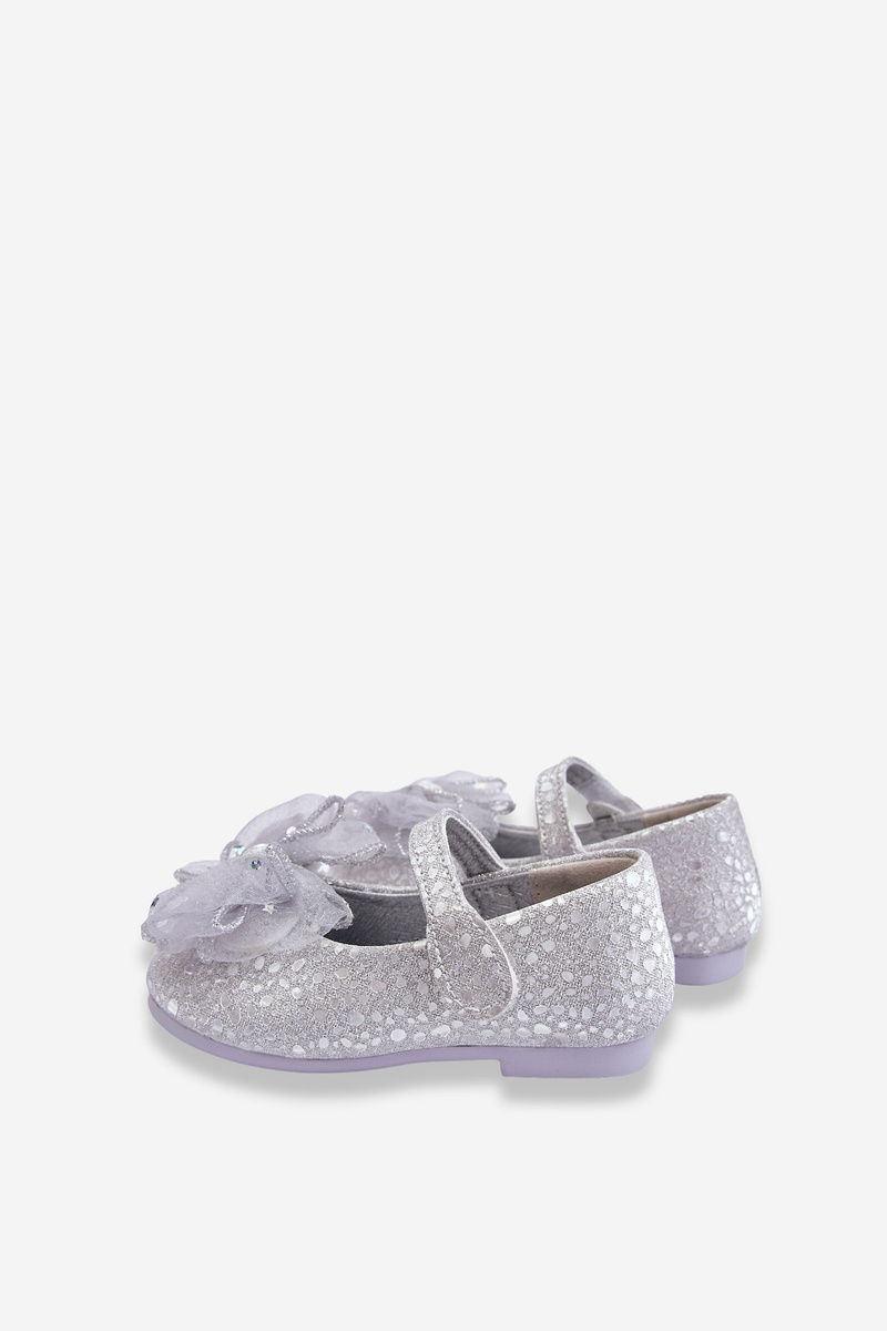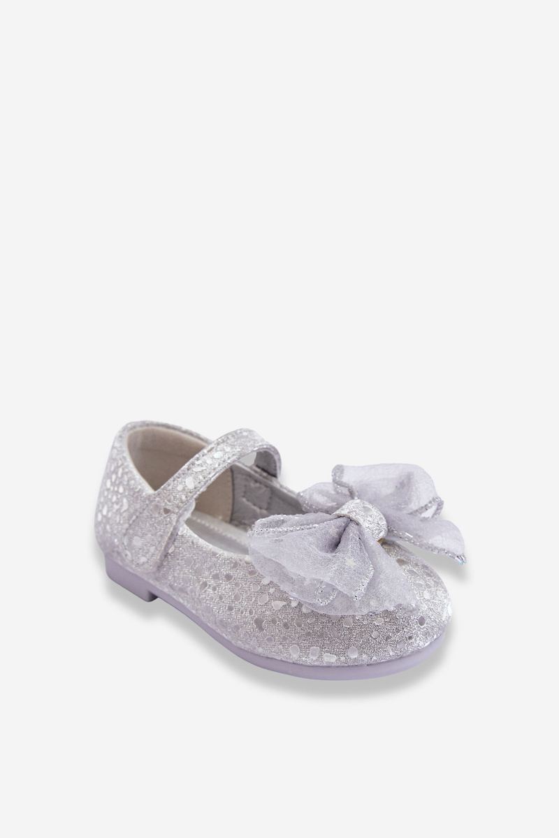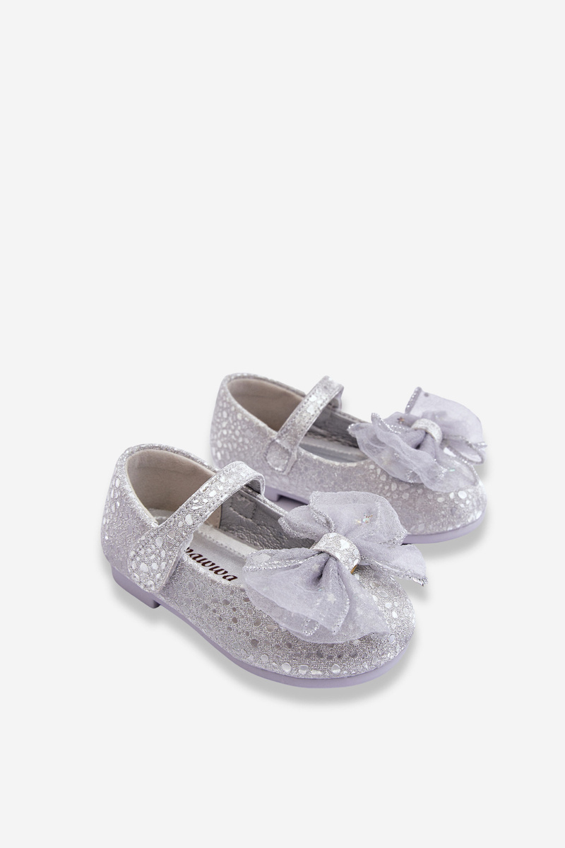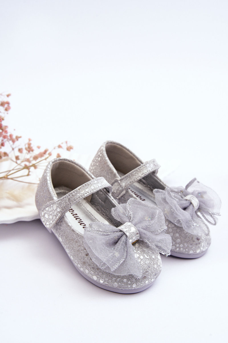 Dziecięce Balerinki Z Kokardą I Brokatem Na Rzep Srebrno-Szare Elisa