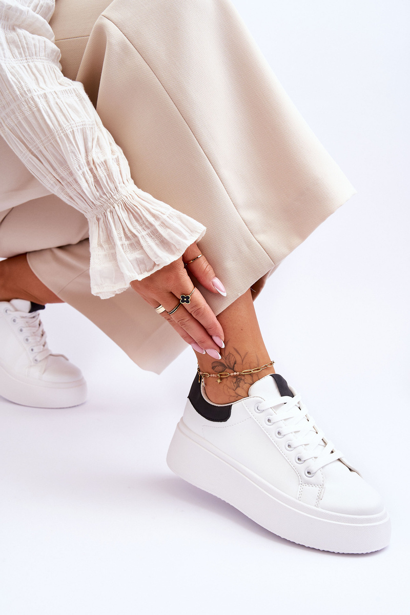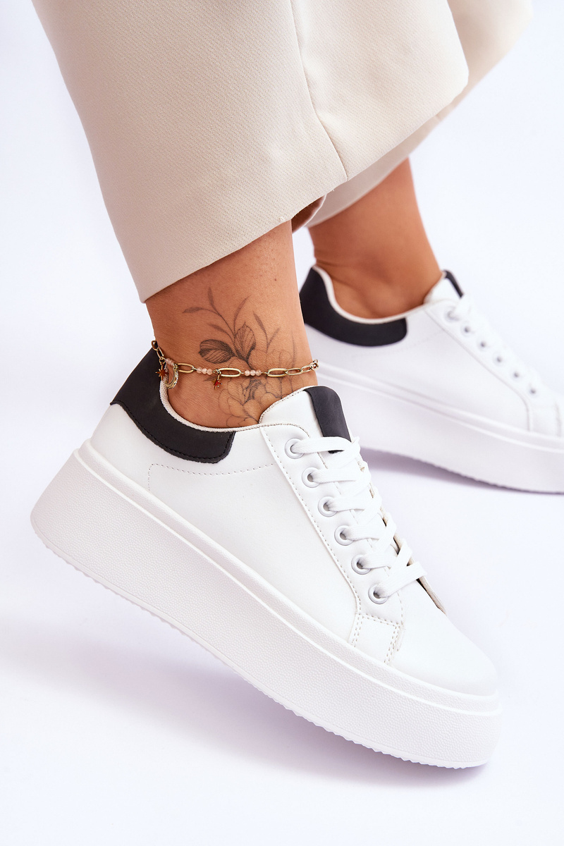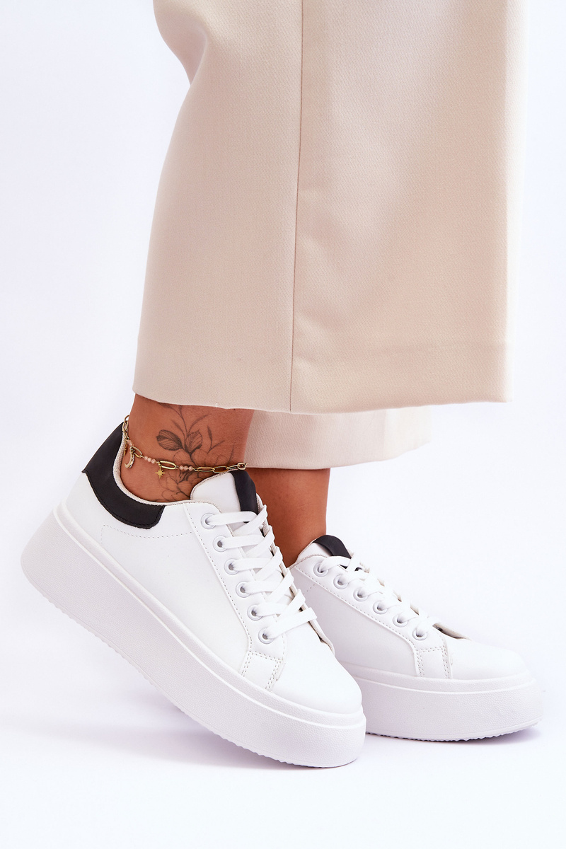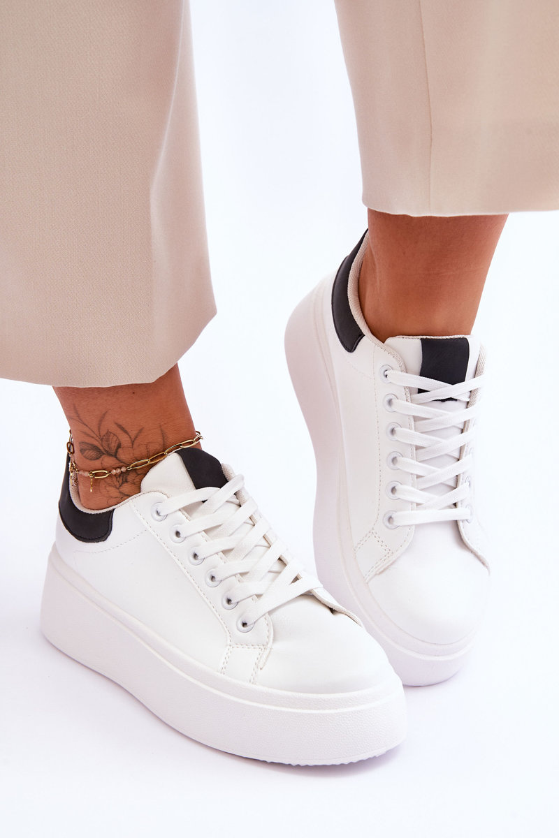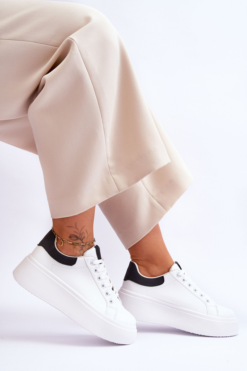 Buty Sportowe Na Masywnej Platformie Biało-Czarne Boneti