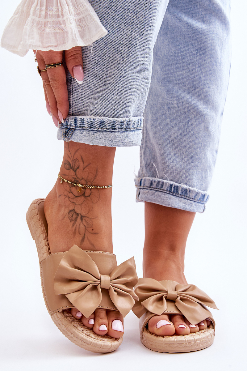 Modne Damskie Klapki Z Kokardą Beżowe Estera