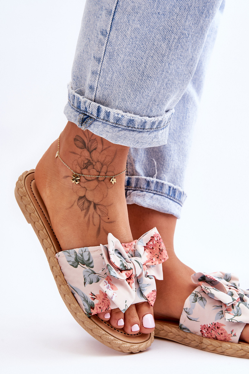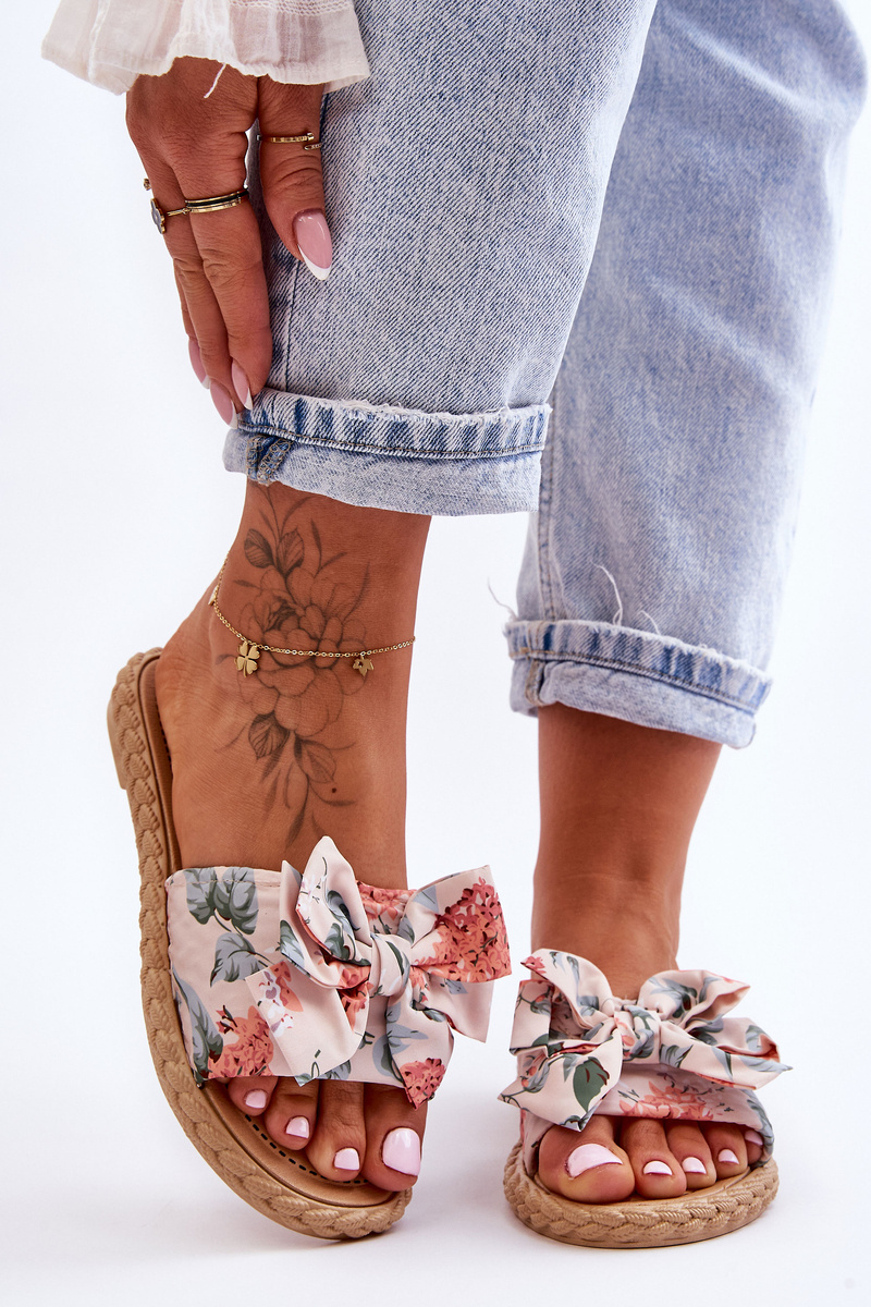 Damskie Klapki Z Materiałową Kokardą Beżowe Blossom