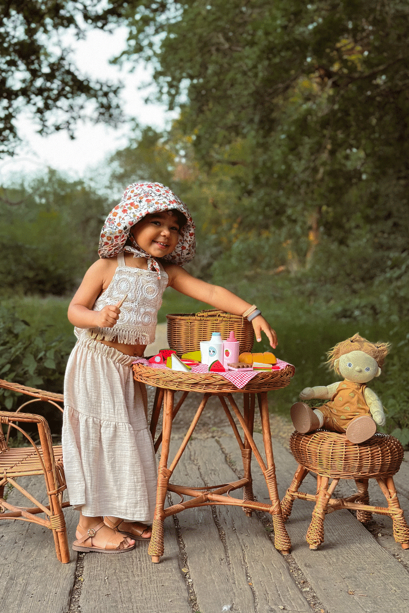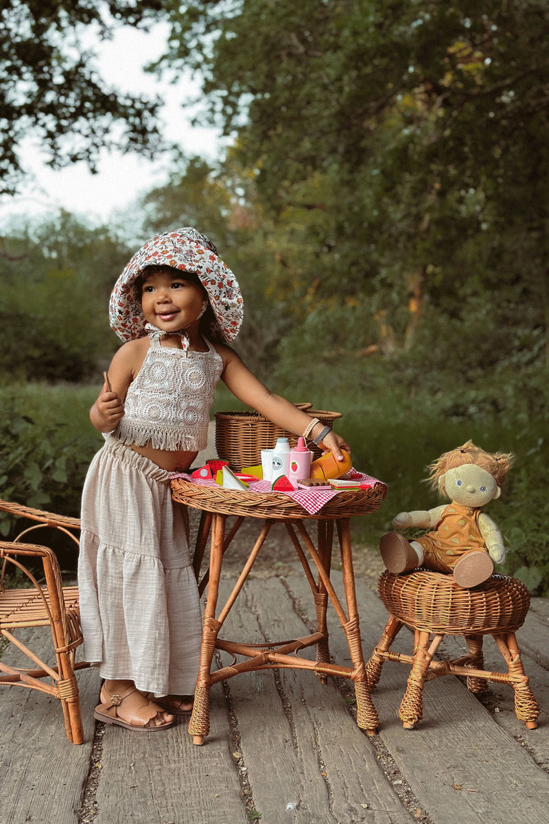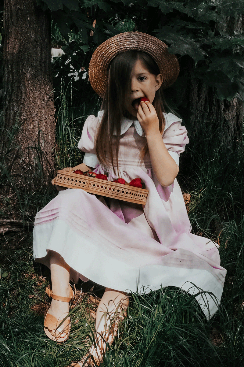 Klasyczne, dziecięce sandałki zostały wykonane z eko skóry. Odkryty nosek pozwoli na odpowiedni przepływ powietrza w obuwiu. Zapinane na regulowany pasek ze sprzączką w kształcie kwiatu. Paseczek na przodzie został ozdobiony delikatnym, ażurowym wzorem. Podeszwa została wykonana z gumy i jest antypoślizgowa. Przy wyborze rozmiaru prosimy sugerować się tabelą rozmiarów.