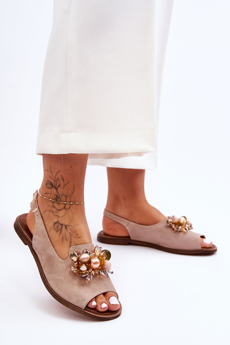 Zamszowe Płaskie Sandały Nicole 2805/042 Beżowe