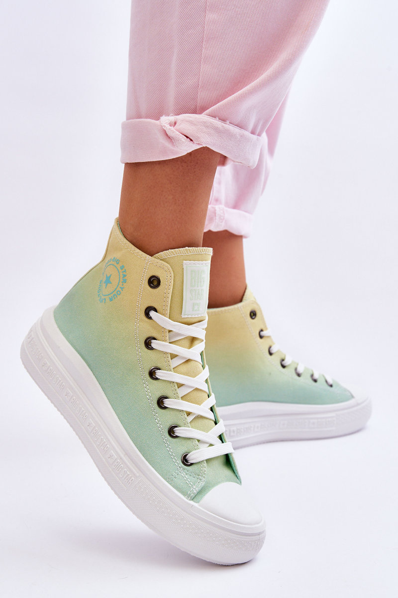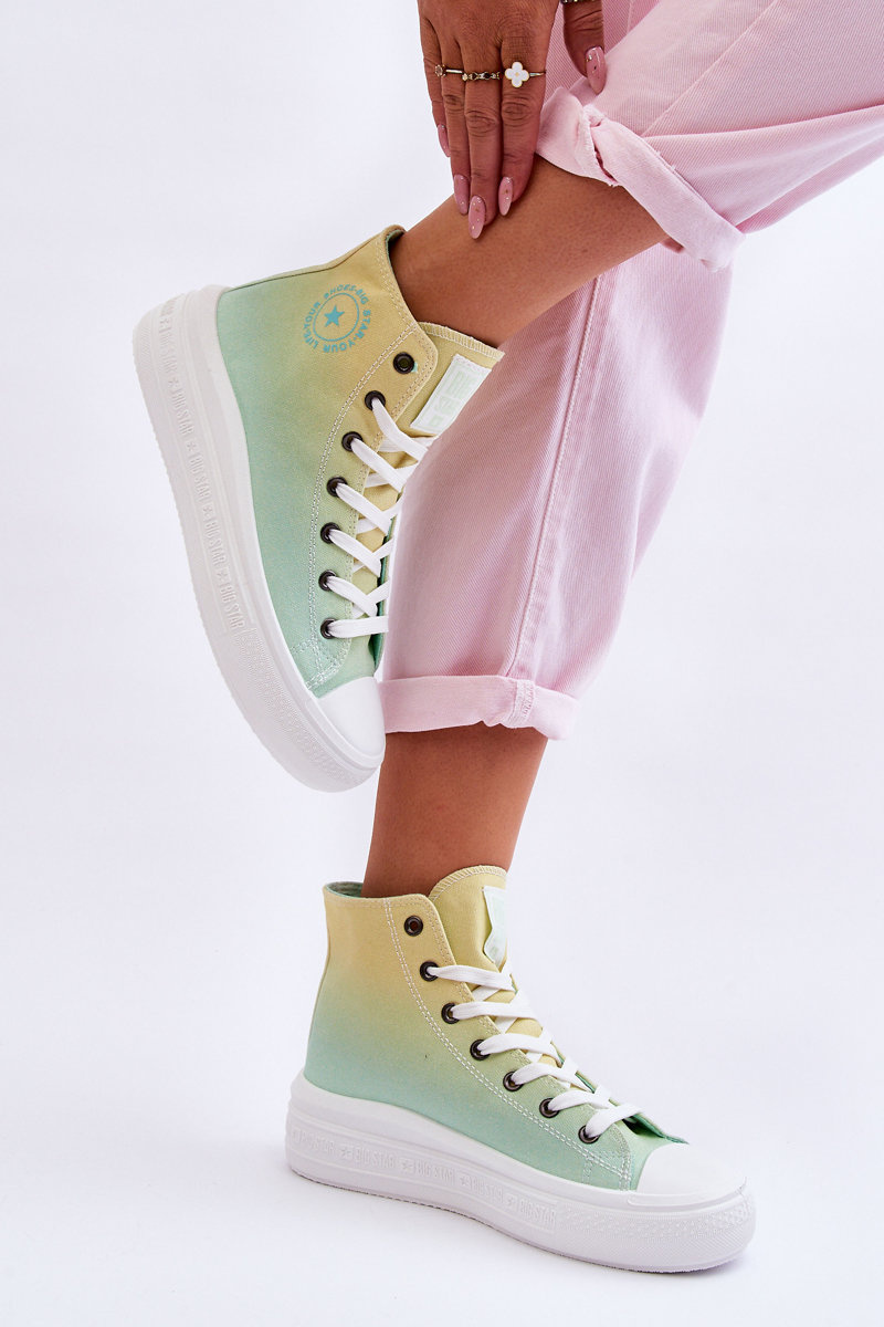 Damskie, wysokie trampki zostały wykonane z materiału tekstylnego. Z boku cholewki posiadają ozdobne logo marki Big Star. Miękka, materiałowa wkładka zapewni wygodę podczas użytkowania. Osadzone na delikatnej platformie z antypoślizgową podeszwą. Model klasycznie sznurowany. Koniecznie sprawdź całą naszą kolekcję butów marki BIG STAR. Przy wyborze rozmiaru prosimy sugerować się tabelą rozmiarów.