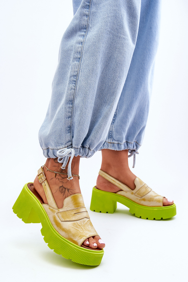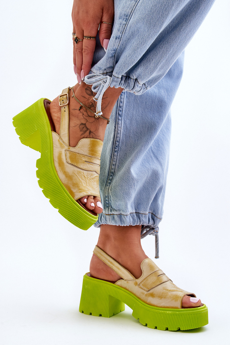 Skórzane Sandały Na Obcasie I Platformie Maciejka 06039-07 Żółte
