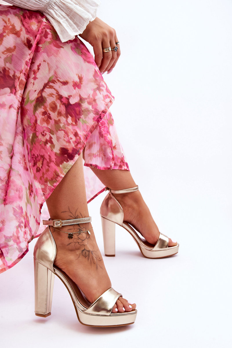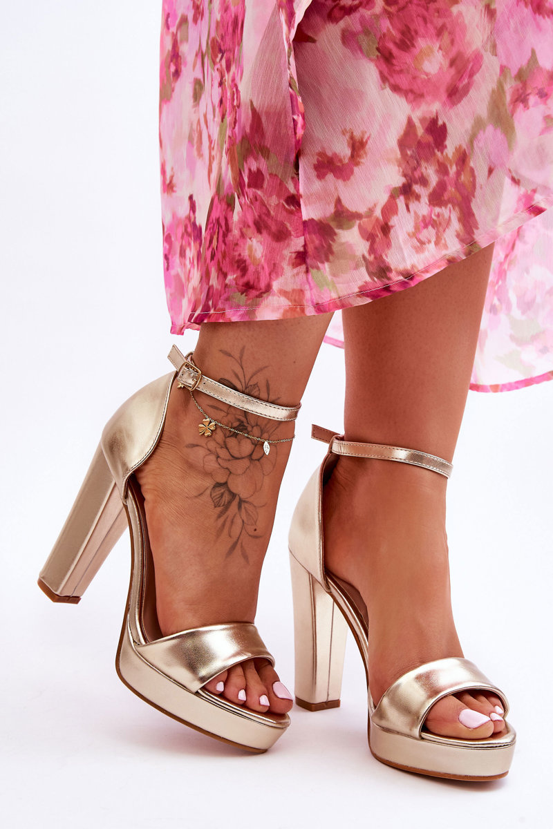 Modne sandałki damskie zostały wykonane z eko skóry. Model ten posiada klasyczne zapinanie na regulowany pasek ze sprzączką. Sandałki osadzono na platformie oraz wysokim obcasie w postaci słupka. Dodatkowo model ten posiada usztywniany zapiętek. Ten buty z pewnością wykorzystasz w wielu sytuacjach! Przy wyborze rozmiaru prosimy sugerować się tabelą rozmiarów.