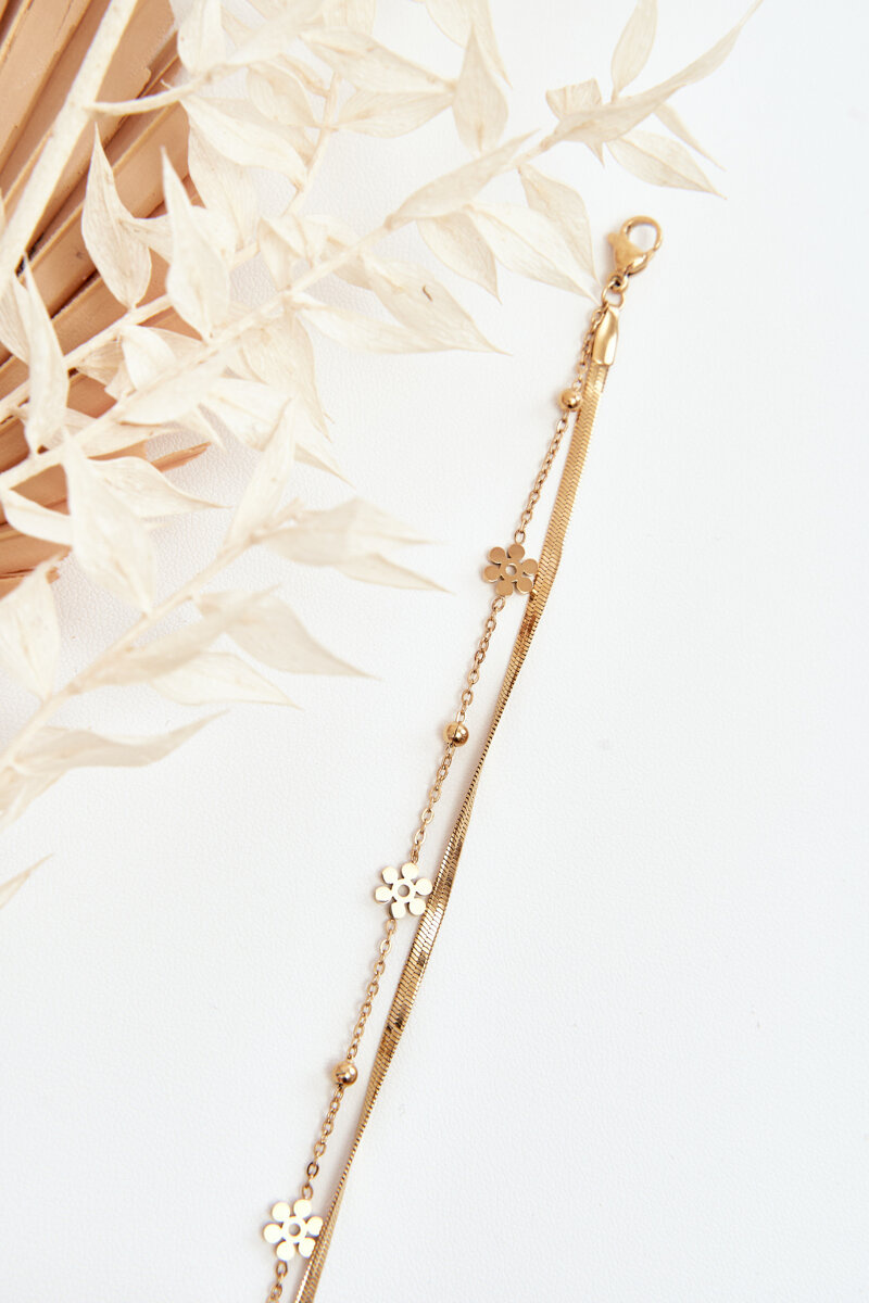 Damska Bransoletka Żmijka Z Kwiatami Złota