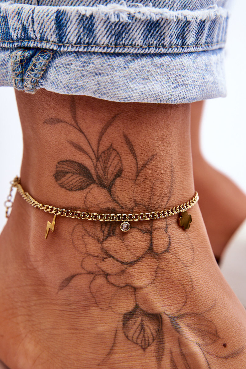 Damska Bransoletka Pancerka Na Nogę Błyskawica I Koniczyna Złota