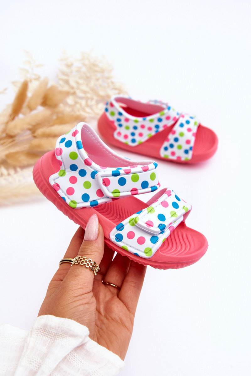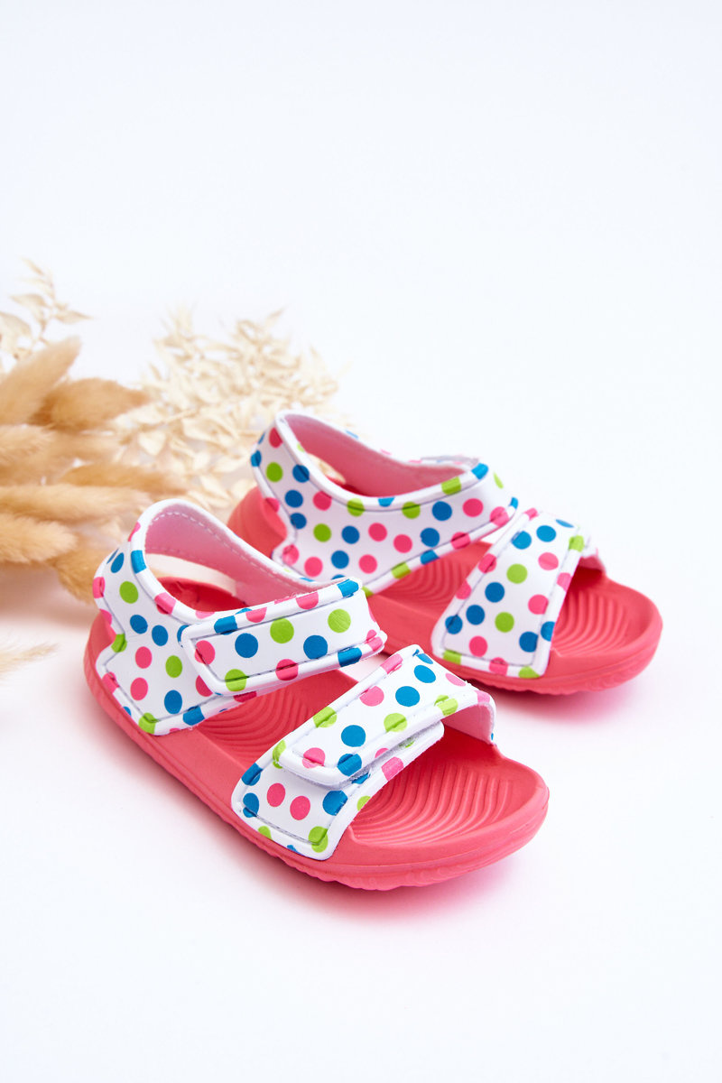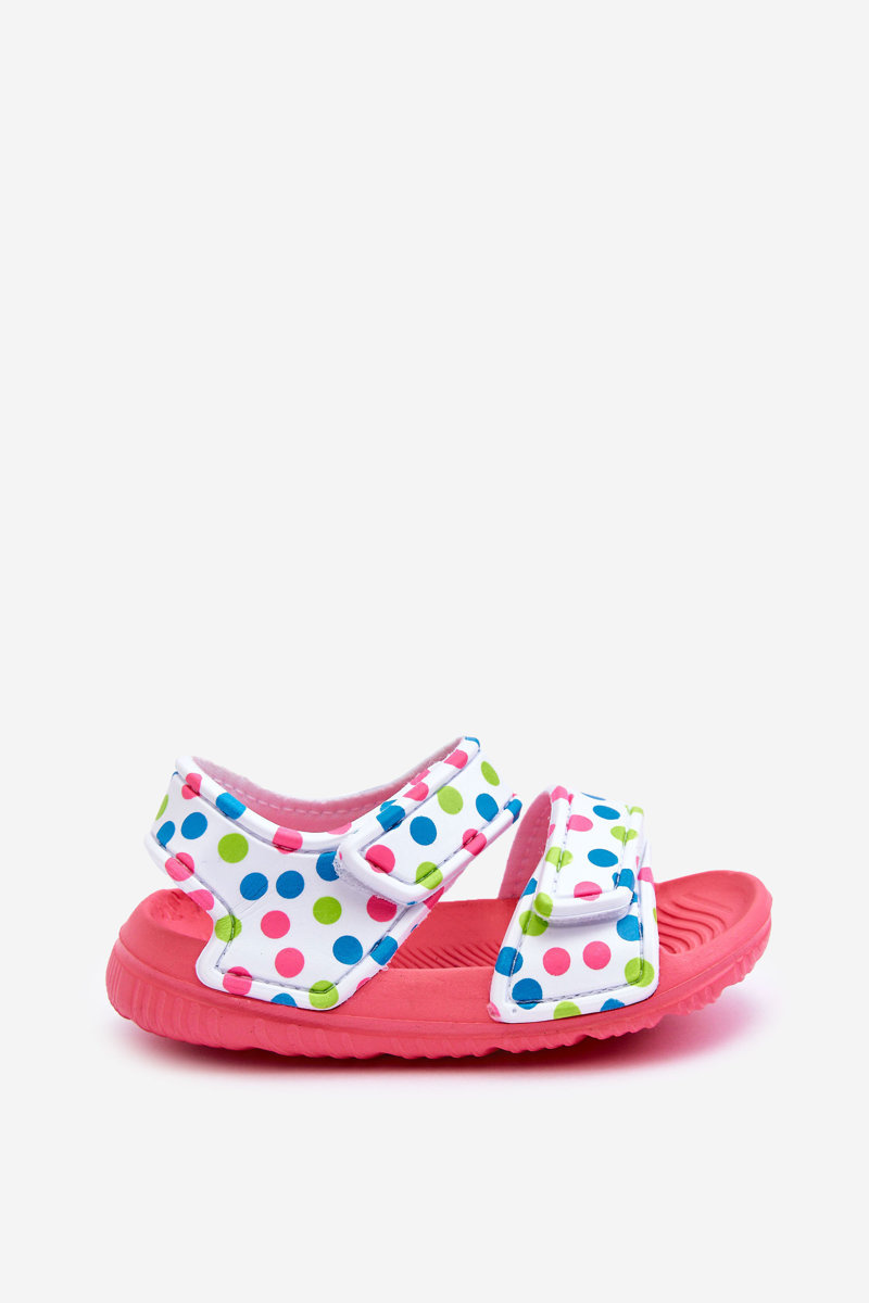 Piankowe Dziecięce Lekkie Sandałki We Wzory Różowo-Białe Malaga