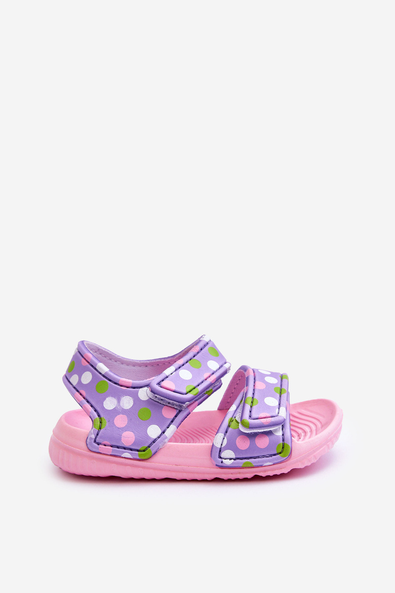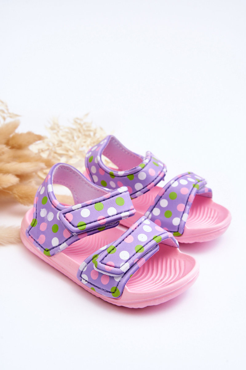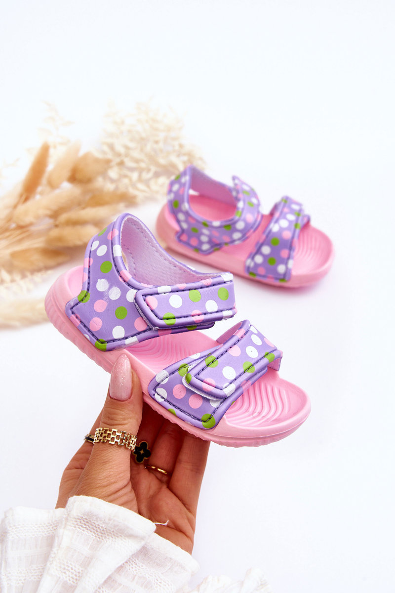 Piankowe Dziecięce Lekkie Sandałki We Wzory Różowo-Fioletowe Malaga