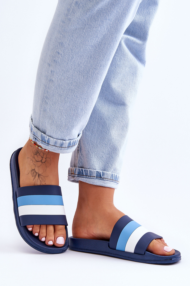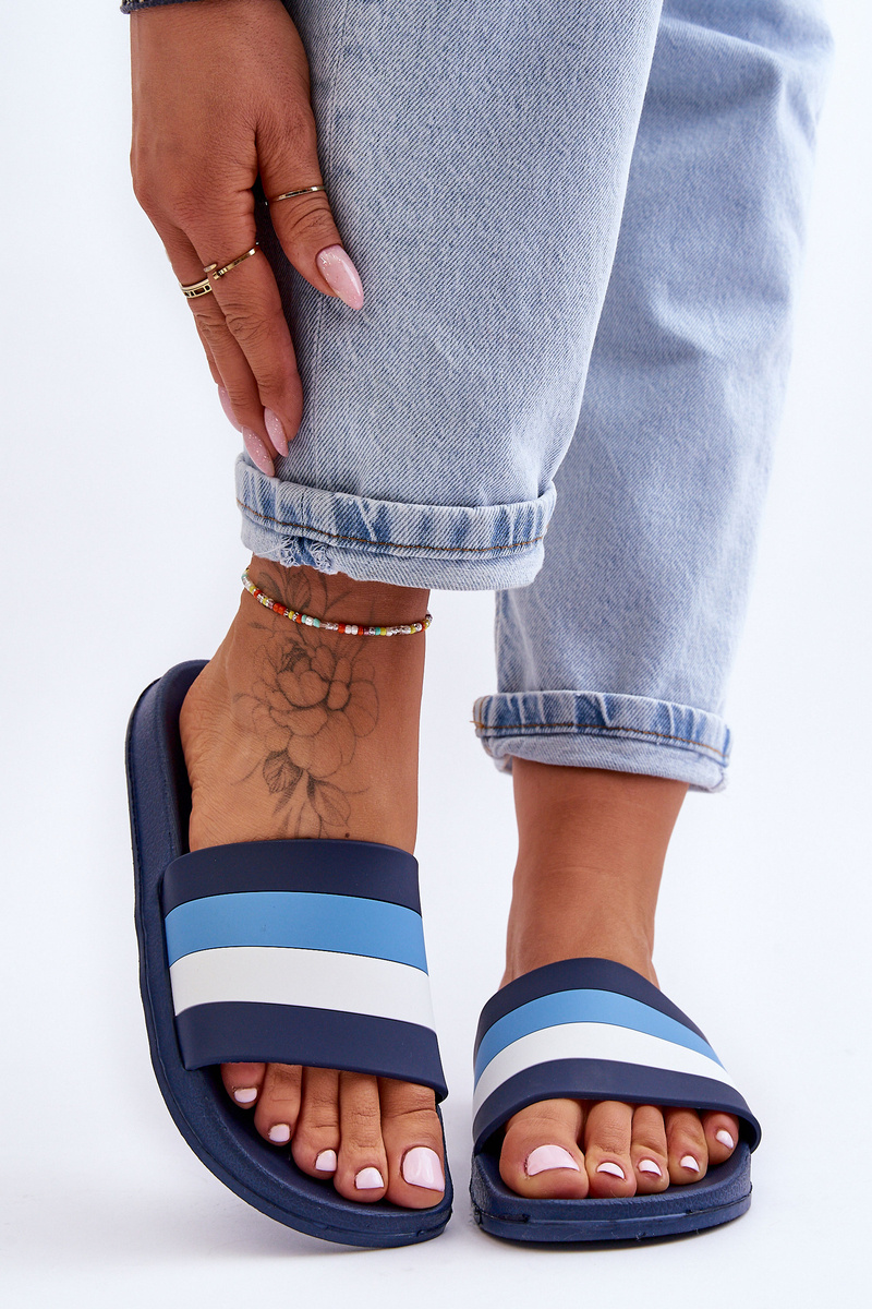 Te klasyczne klapki zostały wykonane z wierzchu z gumowego tworzywa, natomiast wkładka oraz podeszwa z piankowego tworzywa. Na paseczku znajdują się paski. Model ten został osadzony na delikatnej platformie. Te klapki świetnie sprawdzą się także na basen czy plażę. Koniecznie sprawdź także pozostałe modele klapek! Przy wyborze rozmiaru prosimy sugerować się tabelą rozmiarów.