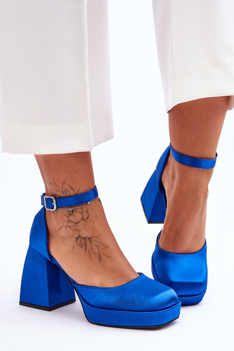 Modne Czółenka Na Masywnym Obcasie Niebieskie Sandia
