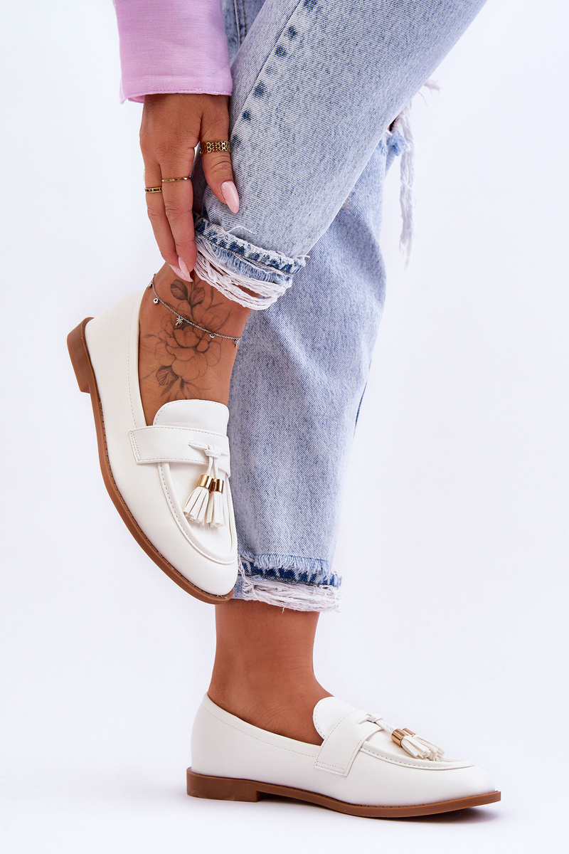 Klasyczne Skórzane Mokasyny Z Frędzlami Białe Camis