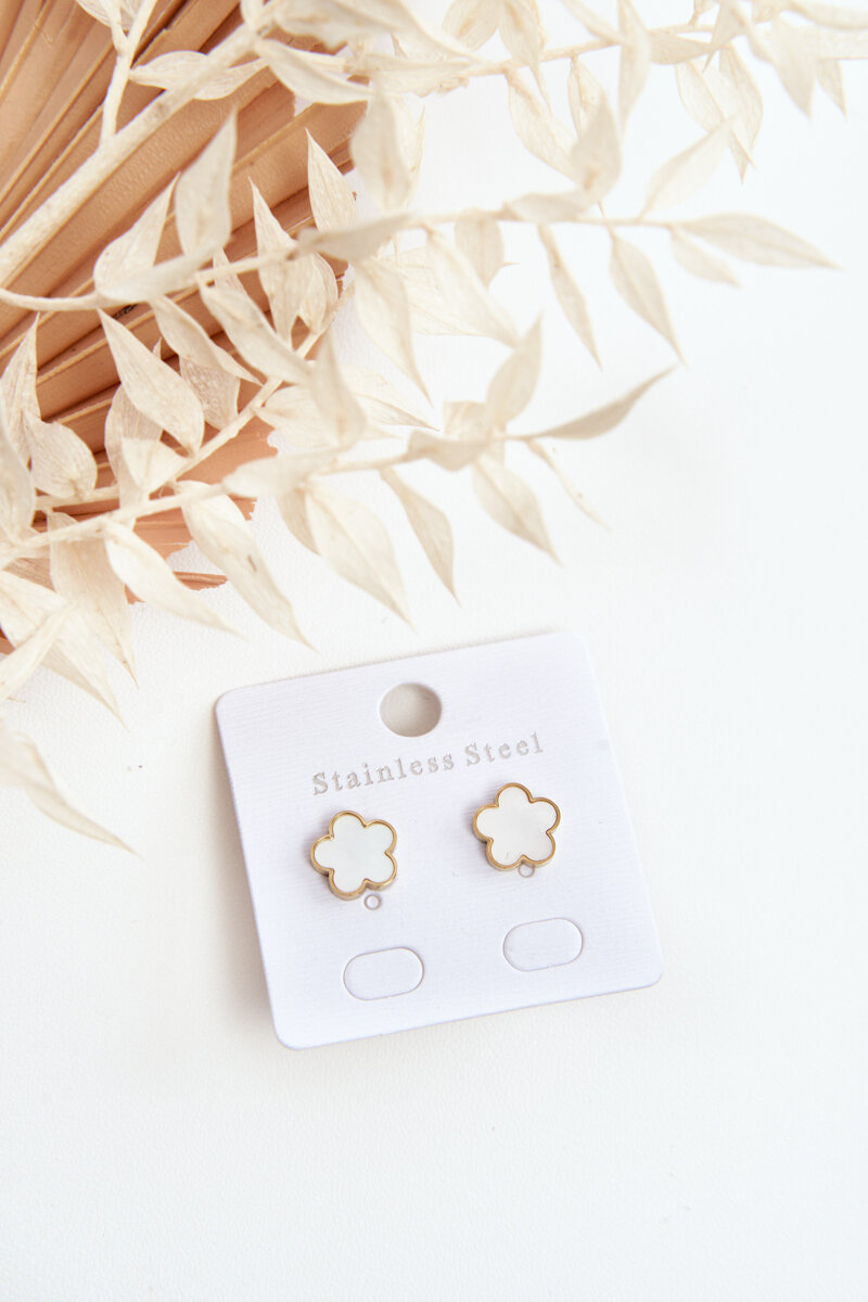 Delikatne Kolczyki Kwiaty Biało-Złote