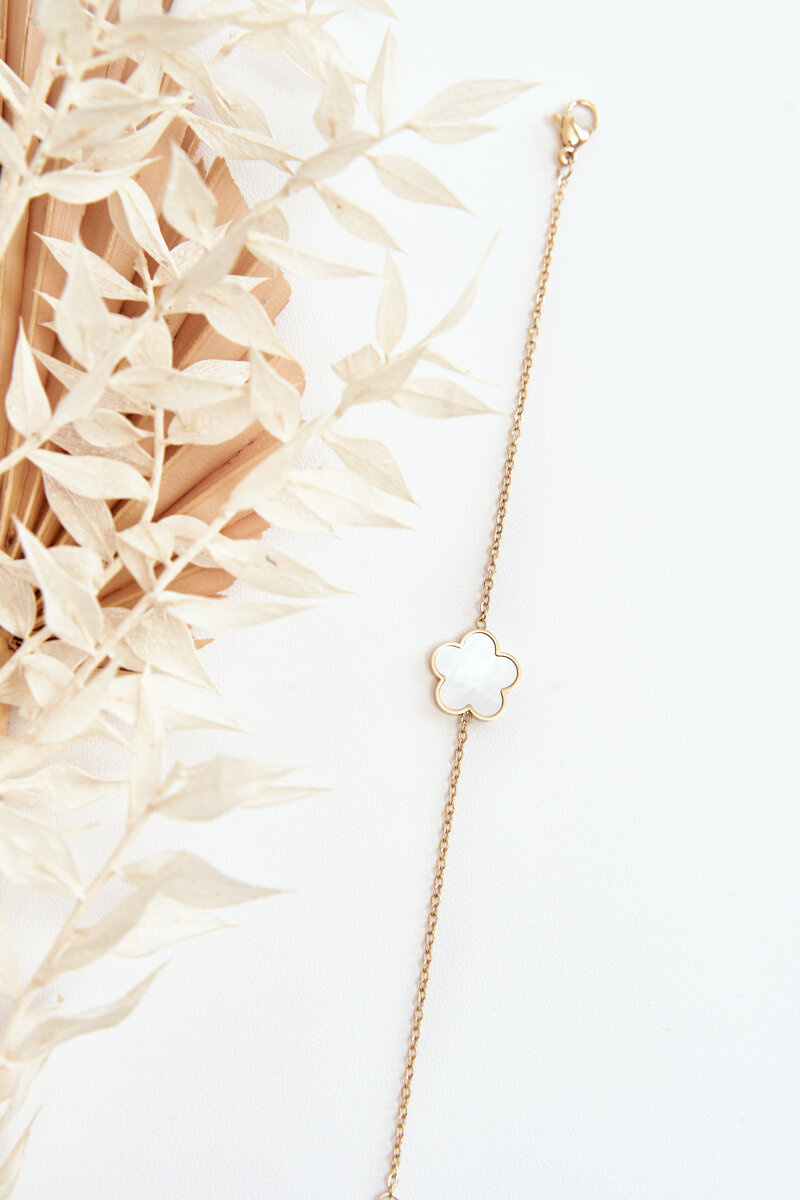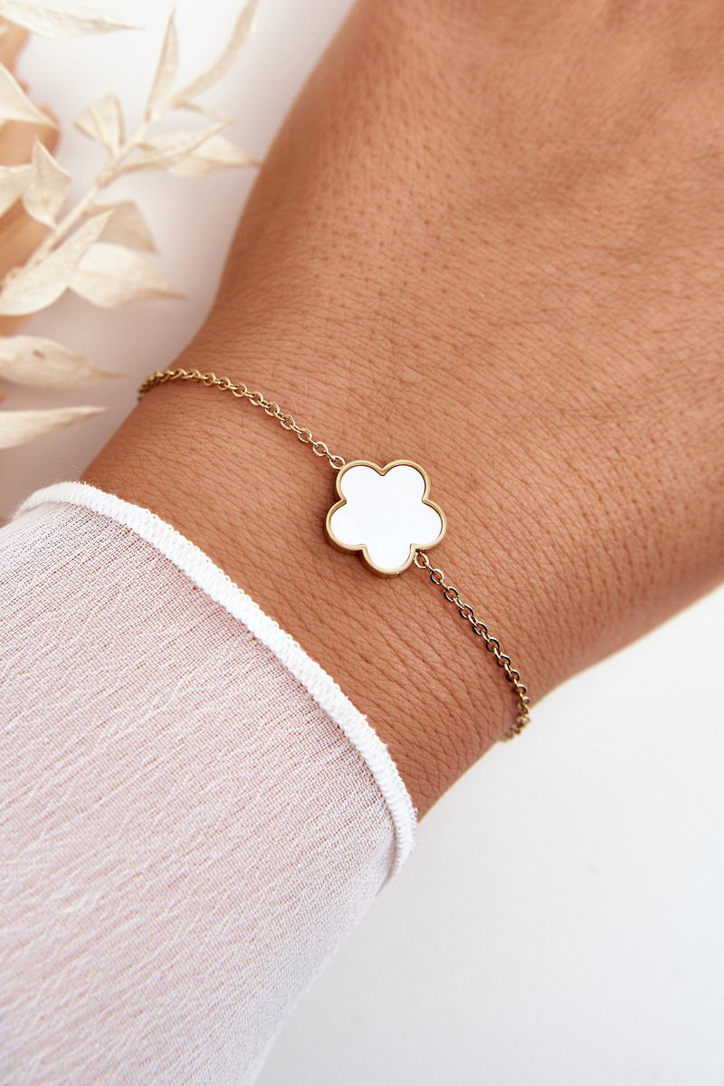 Damska Modna Bransoletka Z Biało-Czarnym Kwiatem Złota