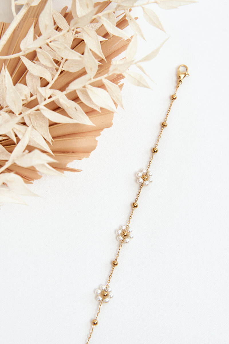 Modna Bransoletka Z Białymi Kwiatkami Złota