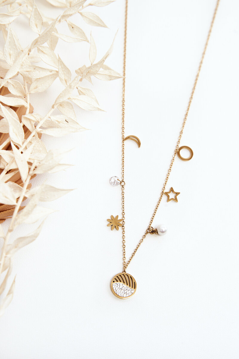 Damski Łańcuszek Z Modnymi Zawieszkami Złoty