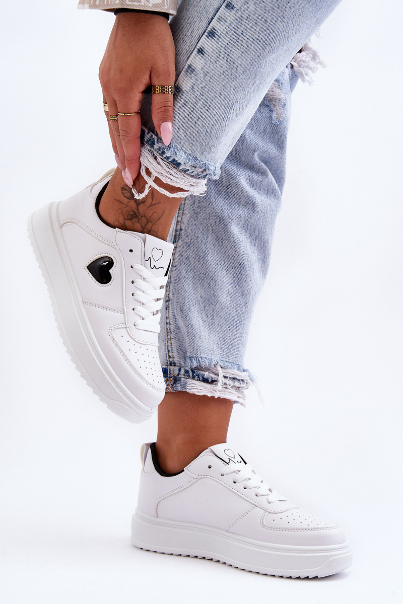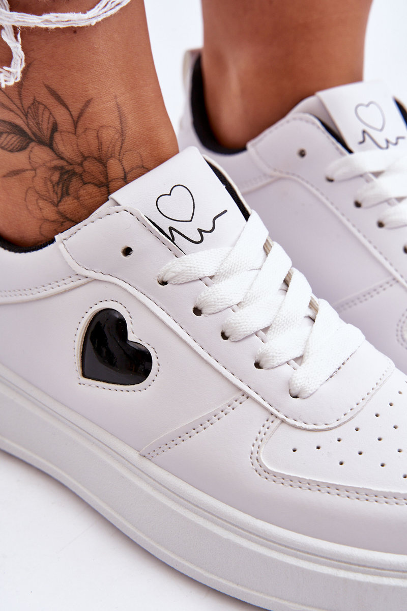 Klasyczne Buty Sportowe Z Serduszkiem Biało-Czarne Amore