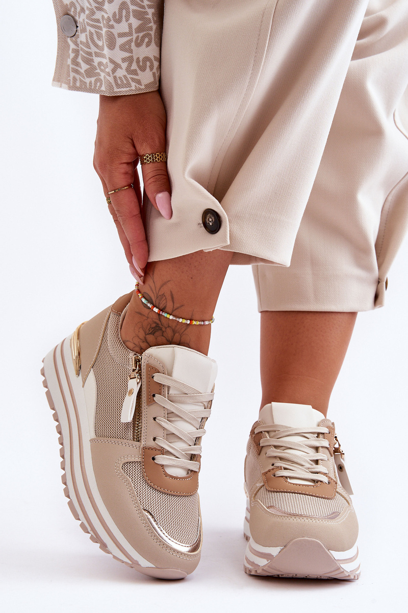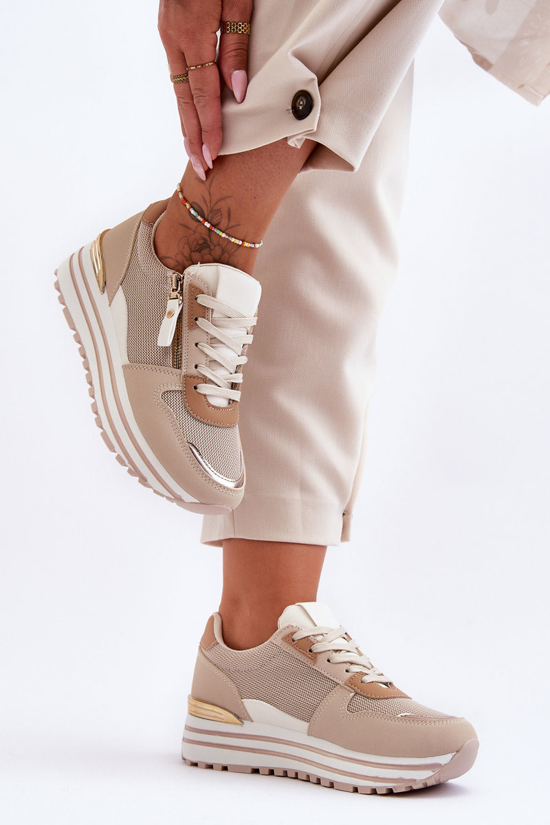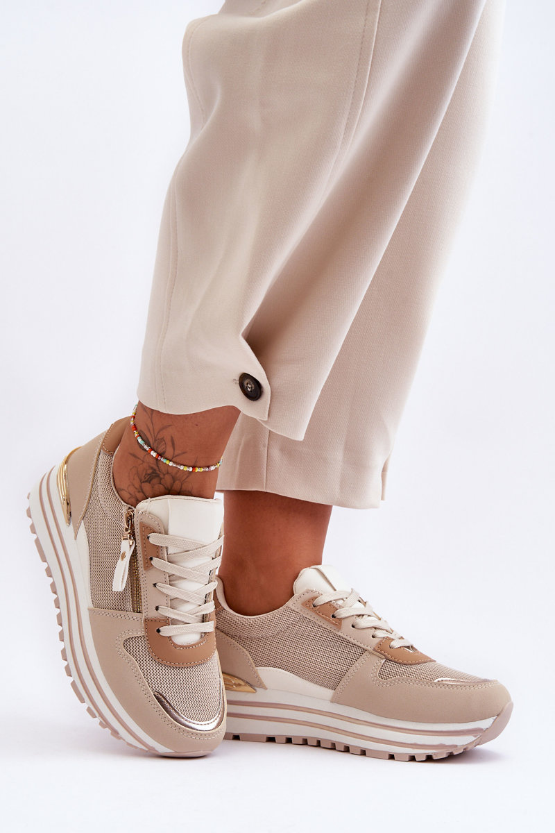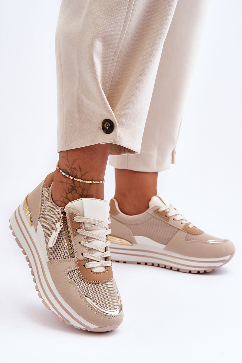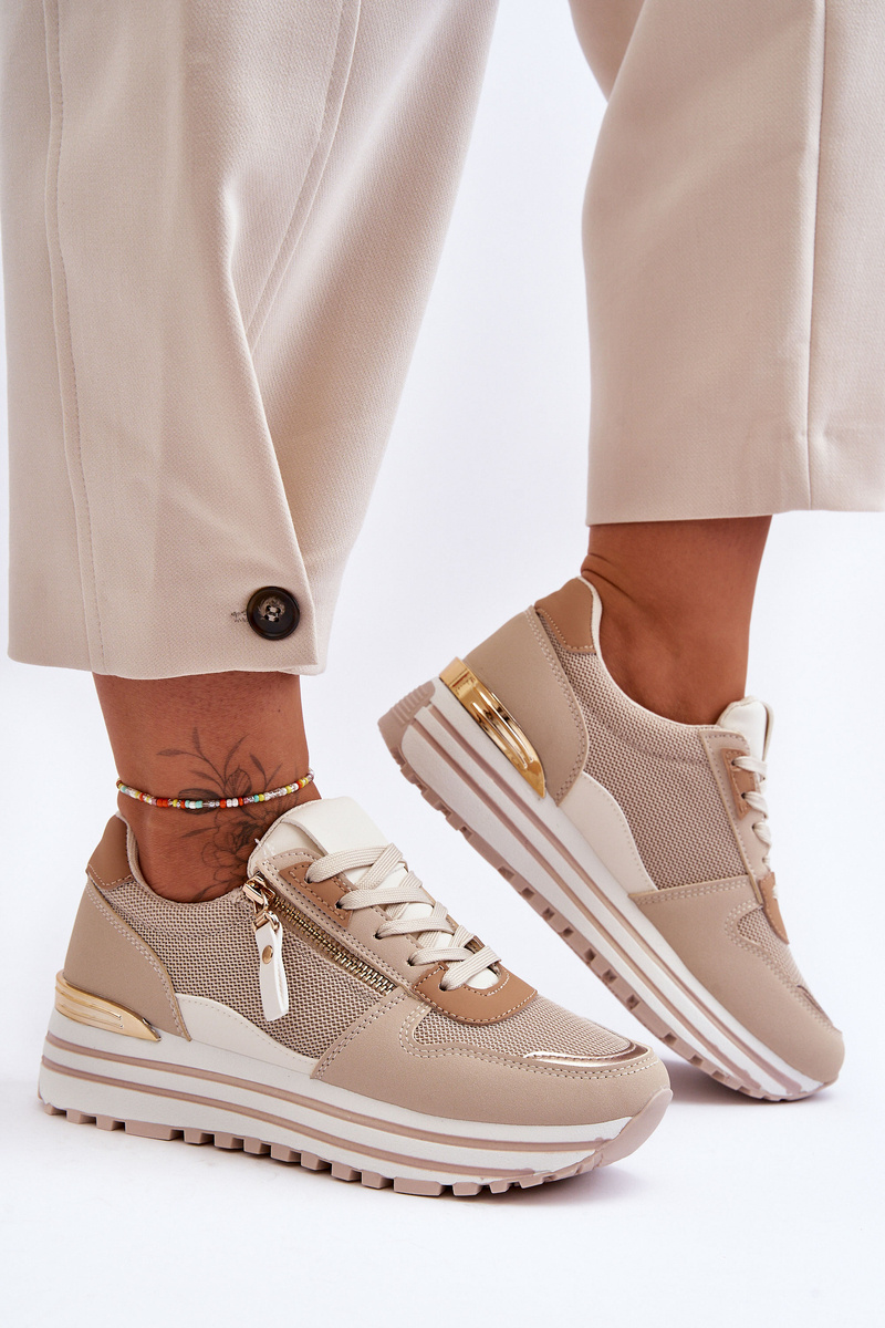 Damskie Buty Sportowe Z Ozdobnym Zamkiem Beżowe Cairo