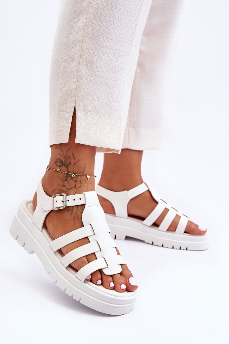 Skórzane Płaskie Sandały Z Paseczkami Białe Diosa