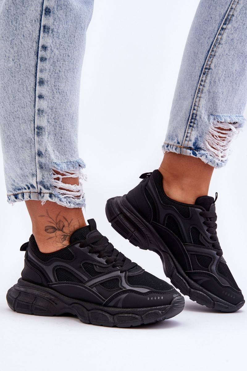 Damskie buty sportowe zostały wykonane z eko skóry oraz materiału tekstylnego. Osadzono je na platformie i płaskim obcasie z antypoślizgową podeszwą. Buty te są klasycznie sznurowane, co pozwoli na odpowiednie dopasowanie obuwia do tęgości nogi. Ten model świetnie sprawdzi się w stylizacjach z dresami czy prążkowanymi sukienkami. Przy wyborze rozmiaru prosimy kierować się tabelą rozmiarów.