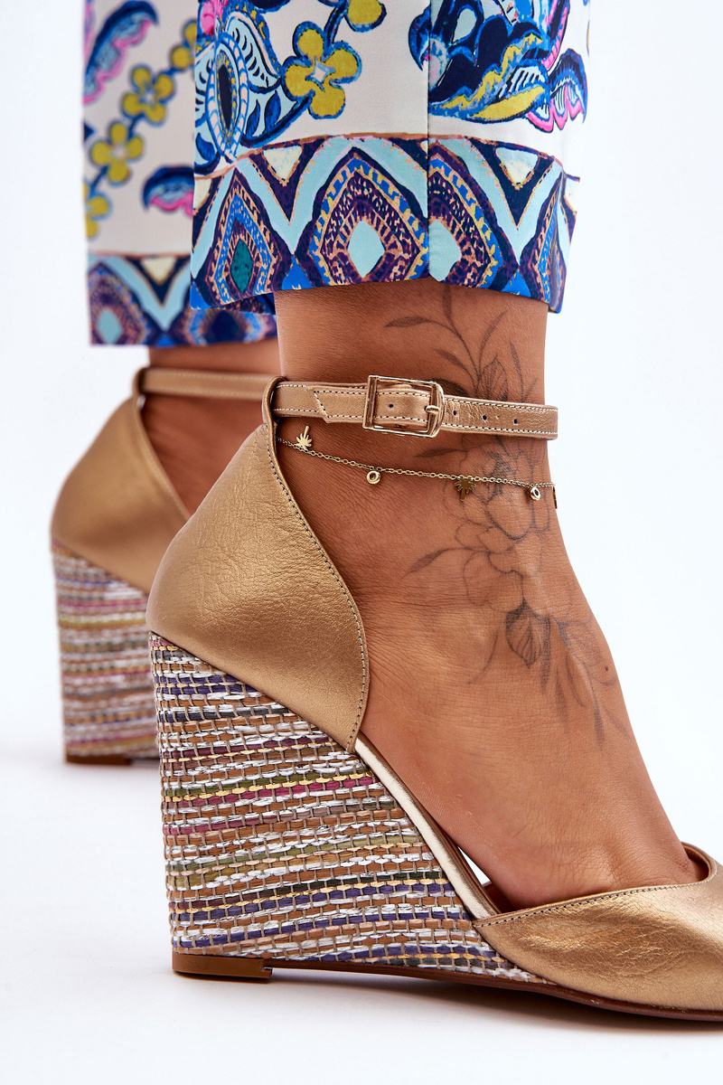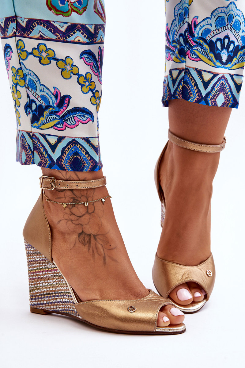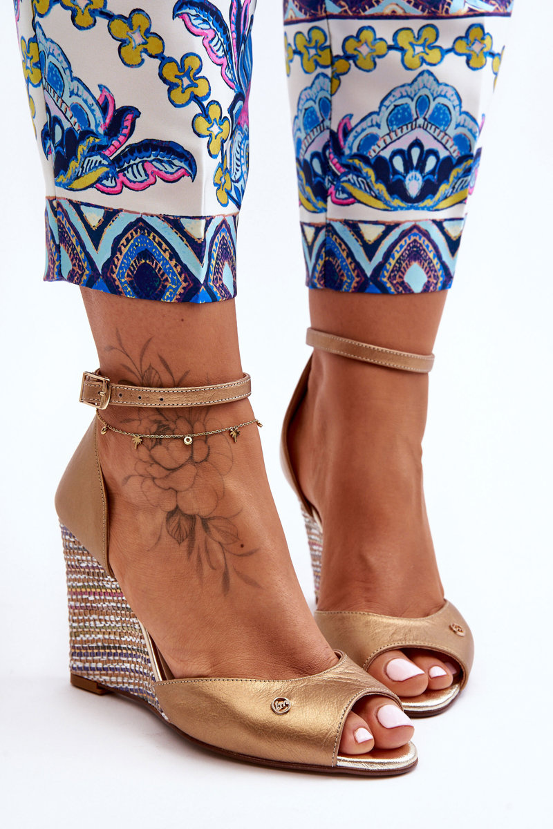Skórzane Sandały Na Koturnie Laura Messi 2603/784 Złote