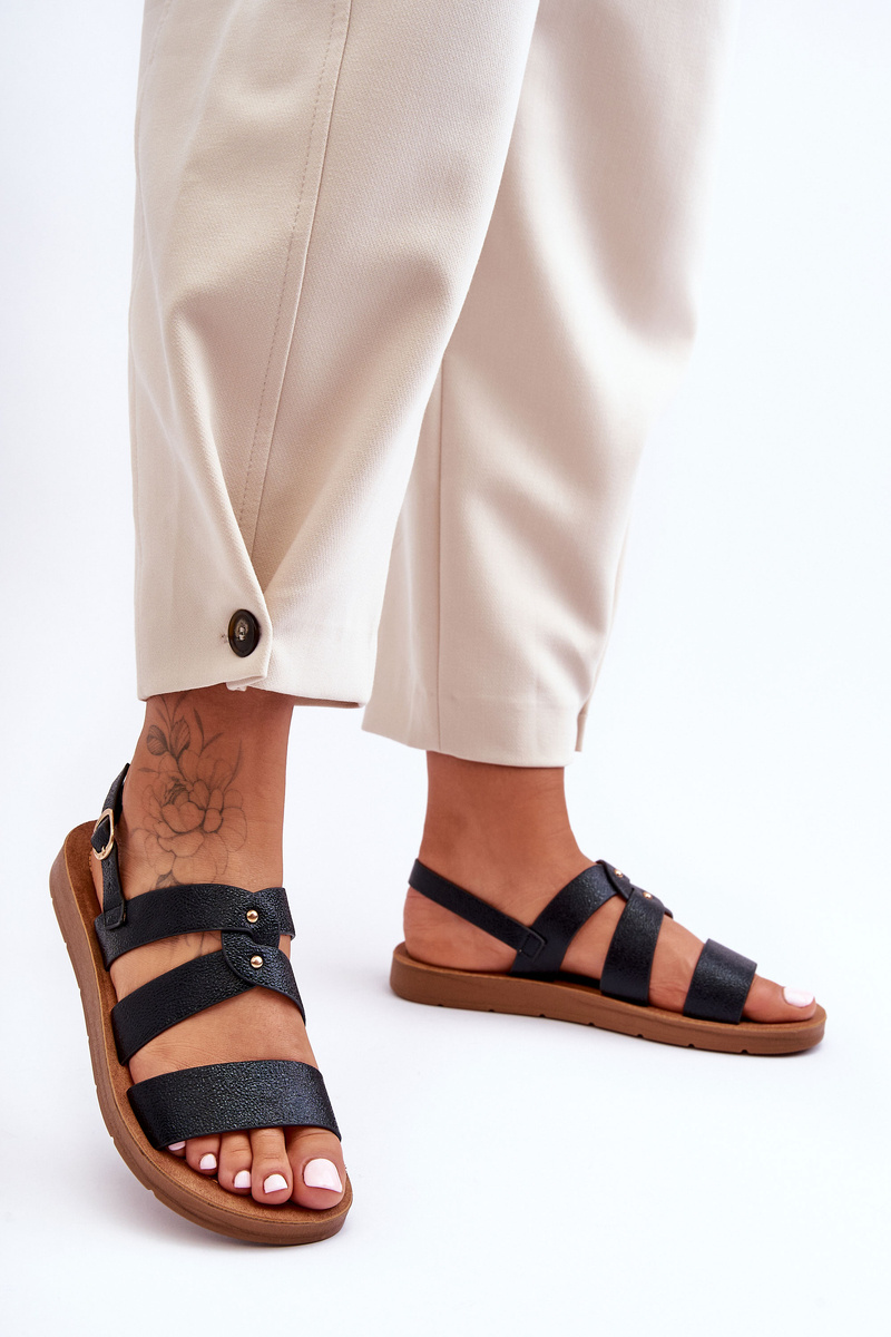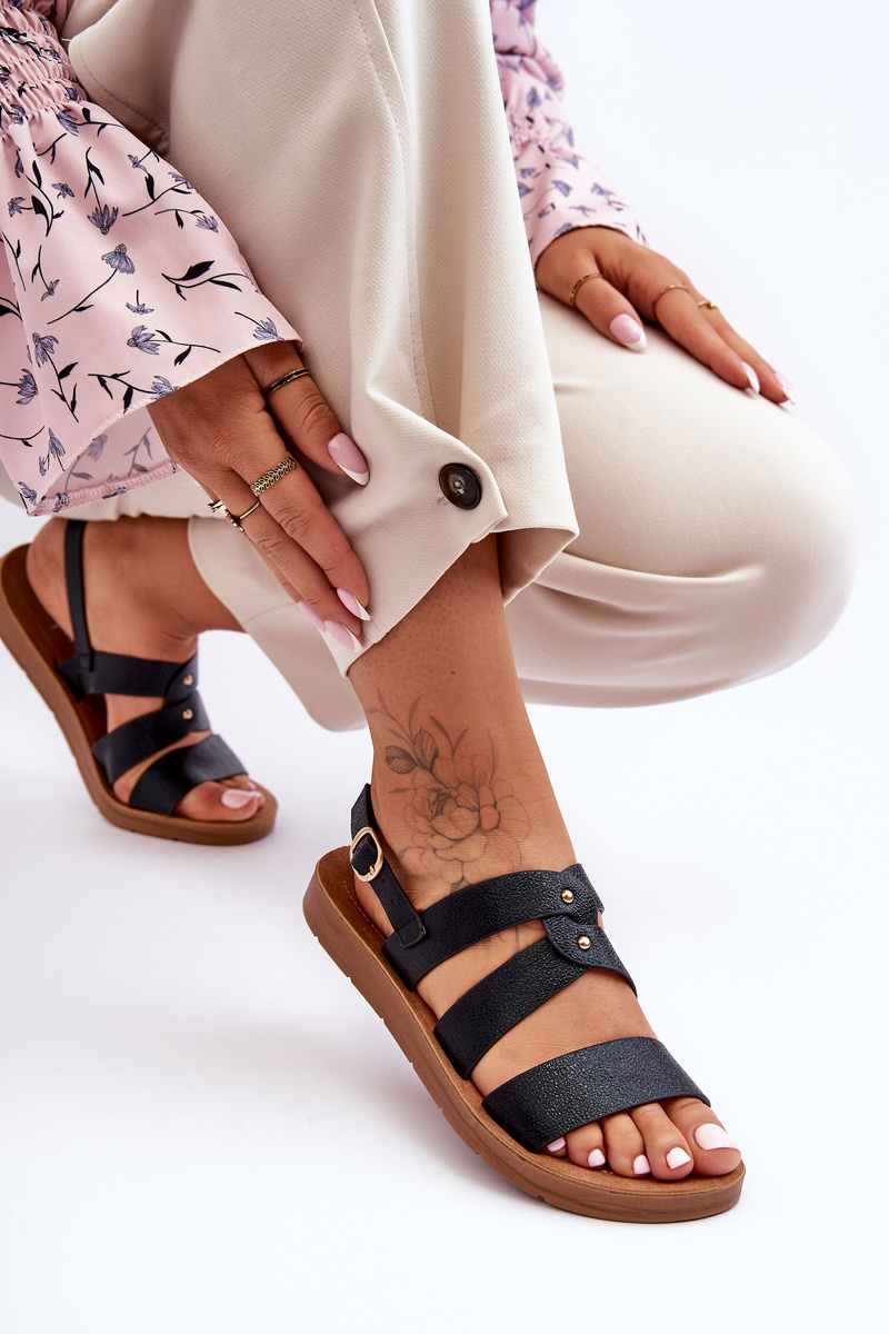 Błyszczące Sandały Damskie Czarne Catalia