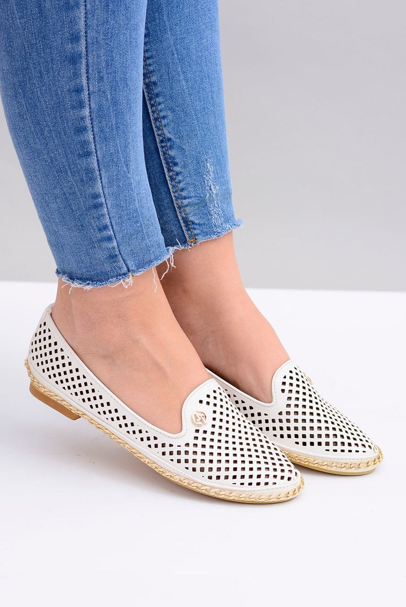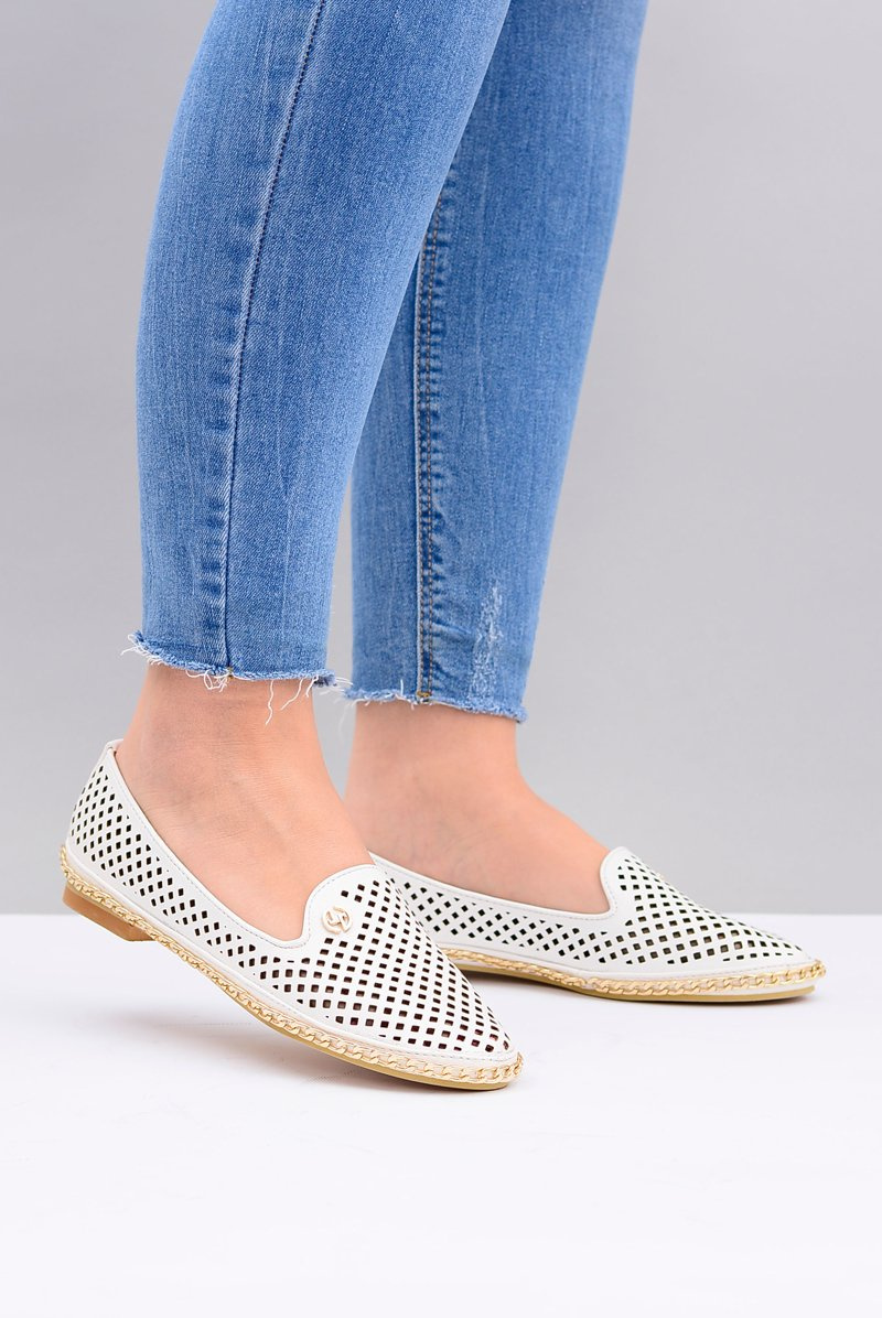 Lu Boo | Białe Ażurowe Balerinki Lordsy Stylish