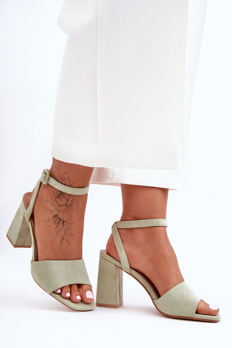 Zamszowe Sandały Na Obcasie Zielone Harriet