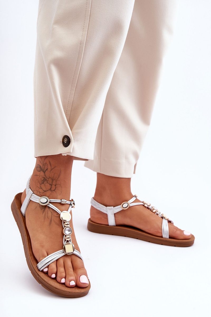 Damskie Sandały z Ozdobami Srebrne Kushi