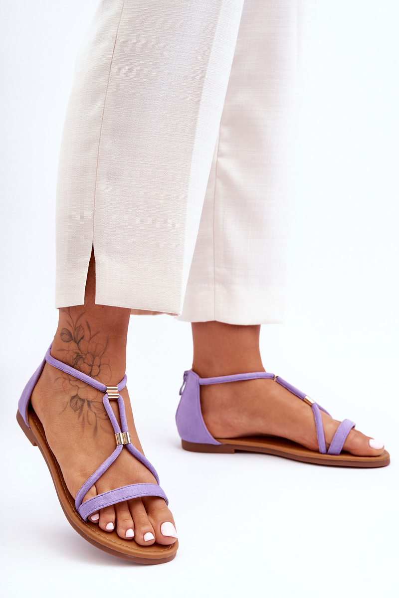 Damskie Płaskie Sandały Na Zamek Fioletowe Jullie
