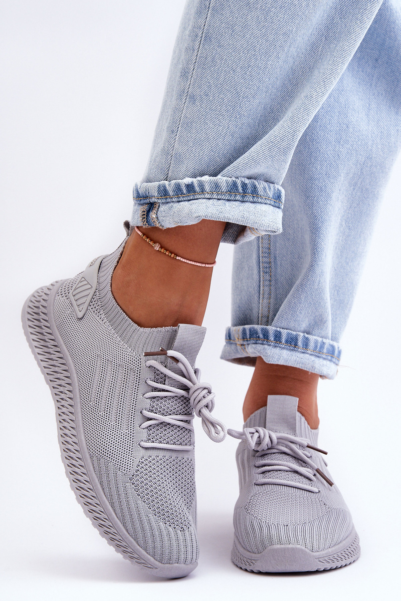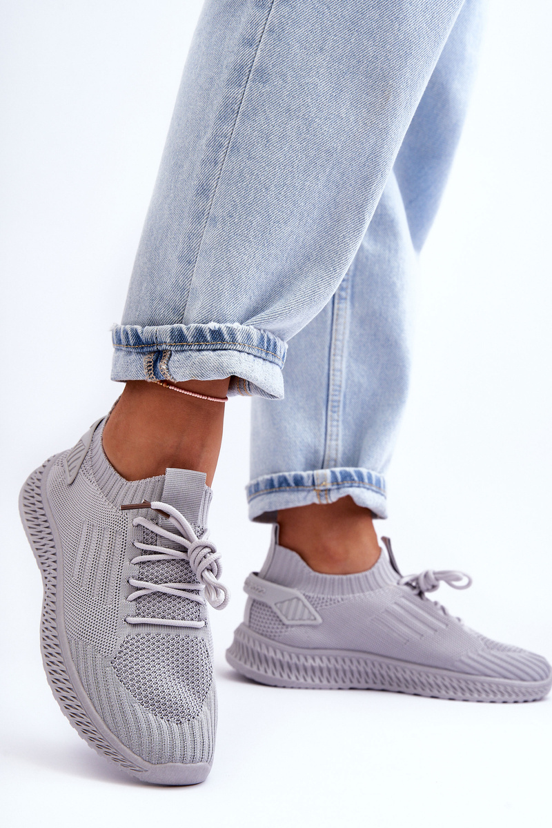 Damskie Wsuwane Materiałowe Buty Sportowe Szare Zauna