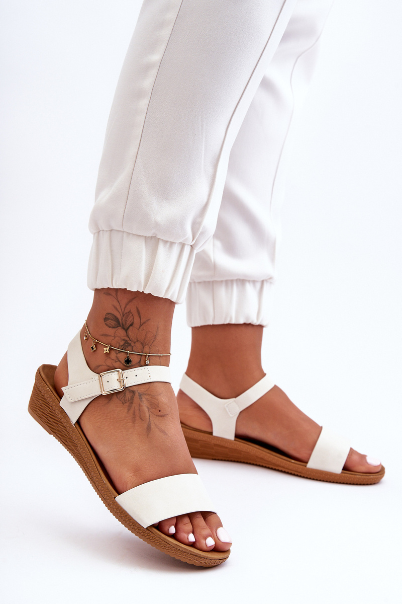 Klasyczne Sandały Na Niskim Koturnie Białe Arya