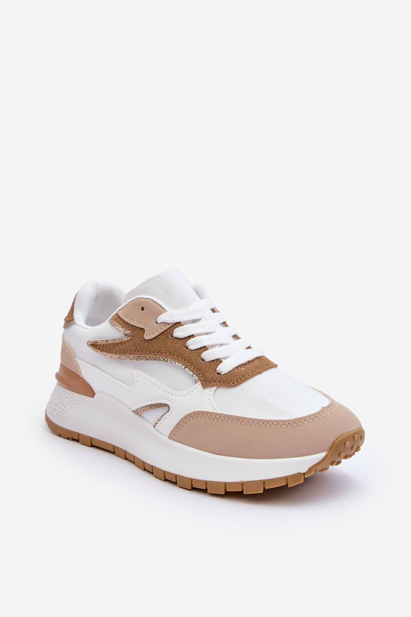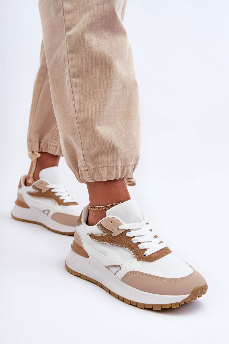 Damskie Buty Sportowe Na Platformie Biało-Beżowe Henley