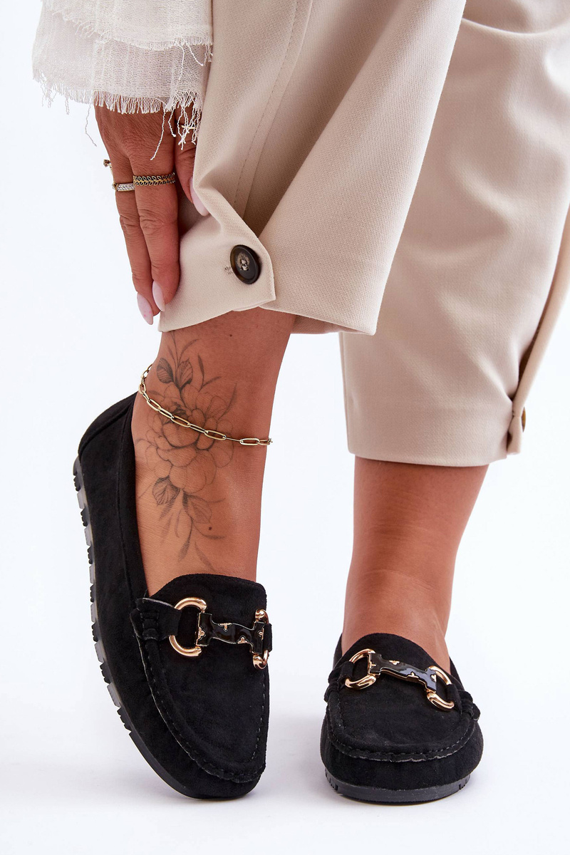 Zamszowe Mokasyny Damskie Z Ozdobą Czarne Dionira
