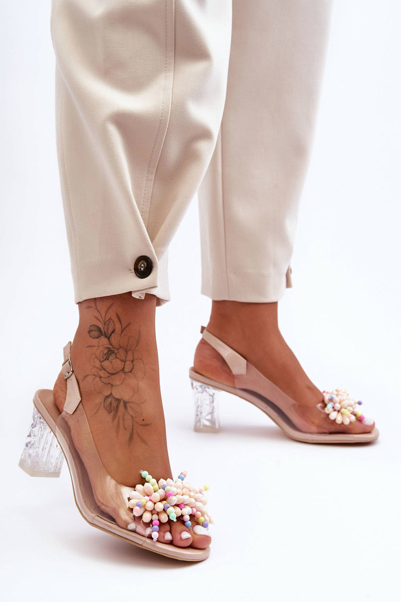 Zdobione Modne Sandały Na Słupku Beżowe S.Barski MR1037-23