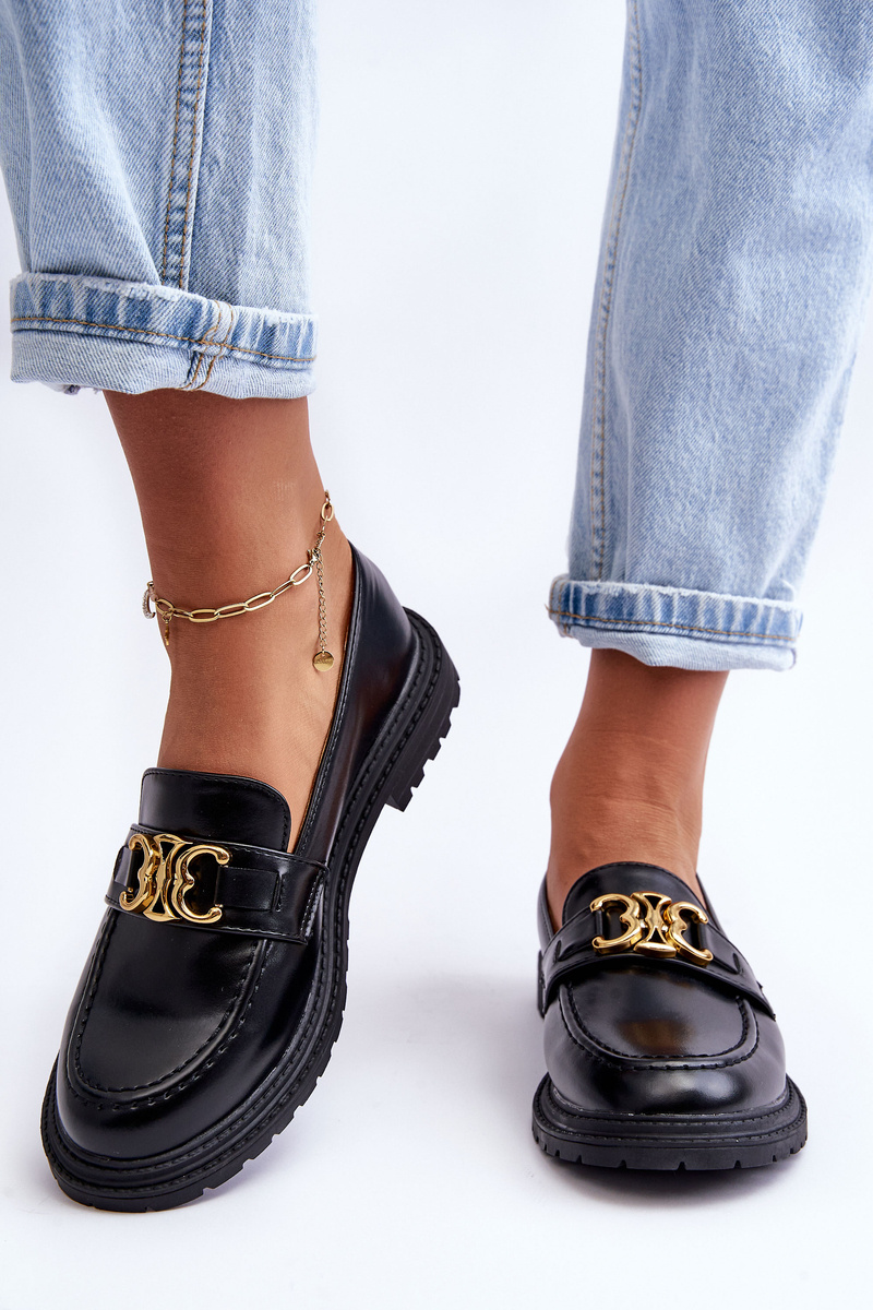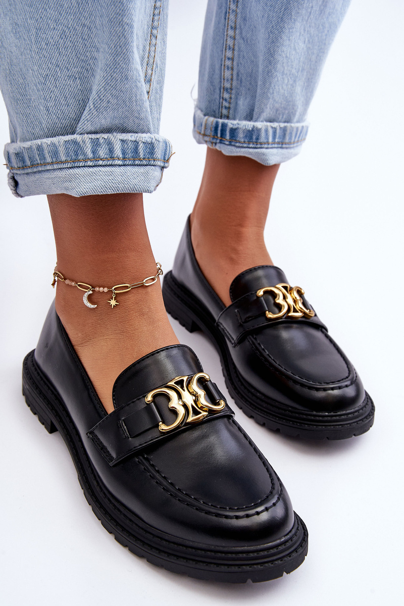 Skórzane Damskie Mokasyny Na Płaskim Obcasie Czarne Sincias