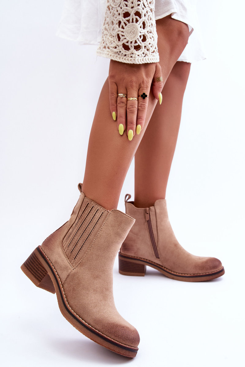 Klasyczne Zamszowe Botki Damskie Beżowe Metanassa