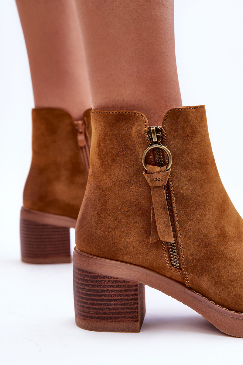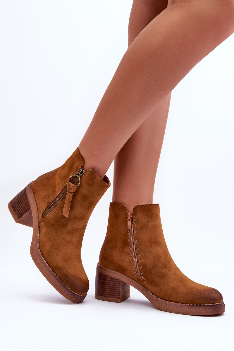 Zamszowe Klasyczne Botki Damskie Brązowe Limoso
