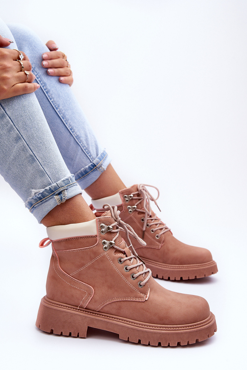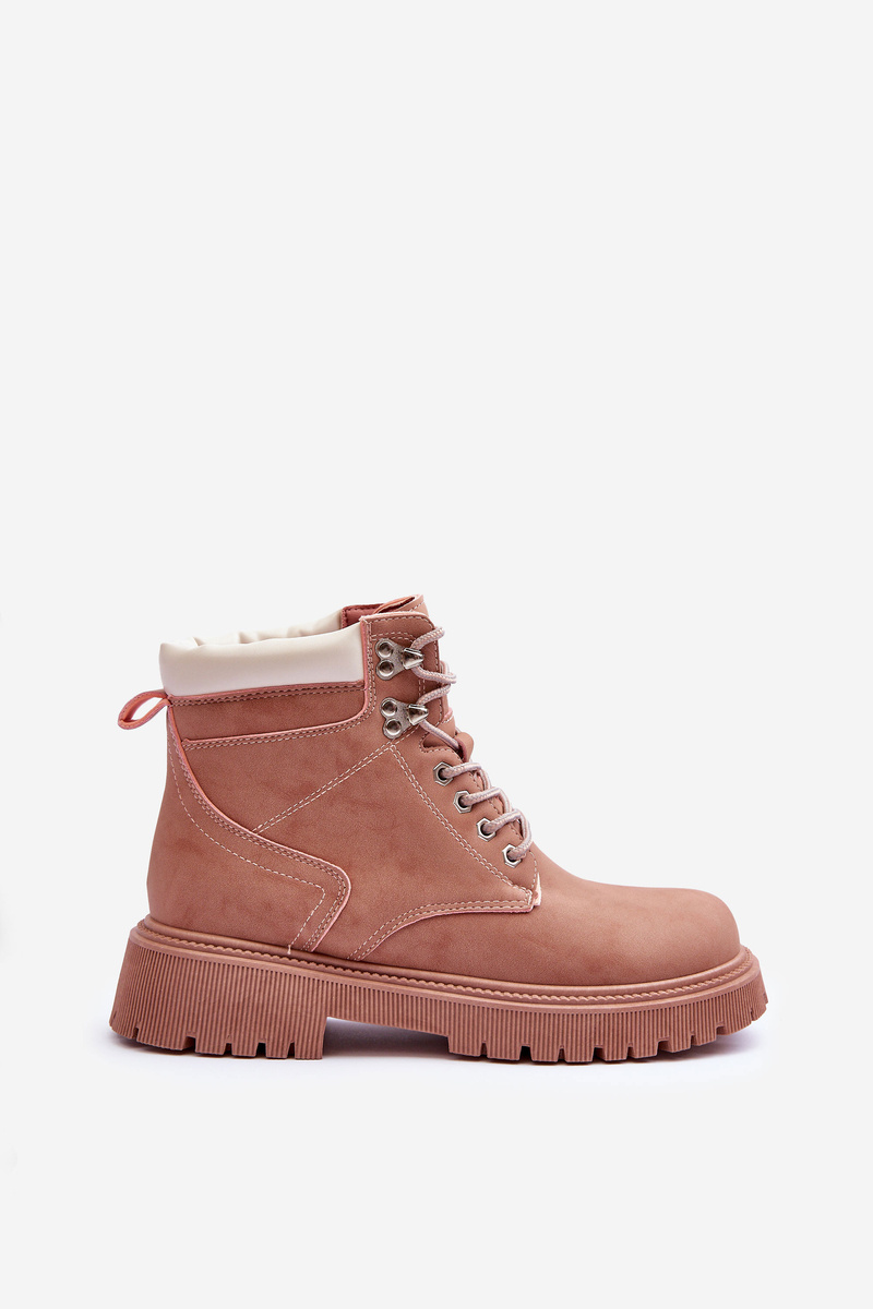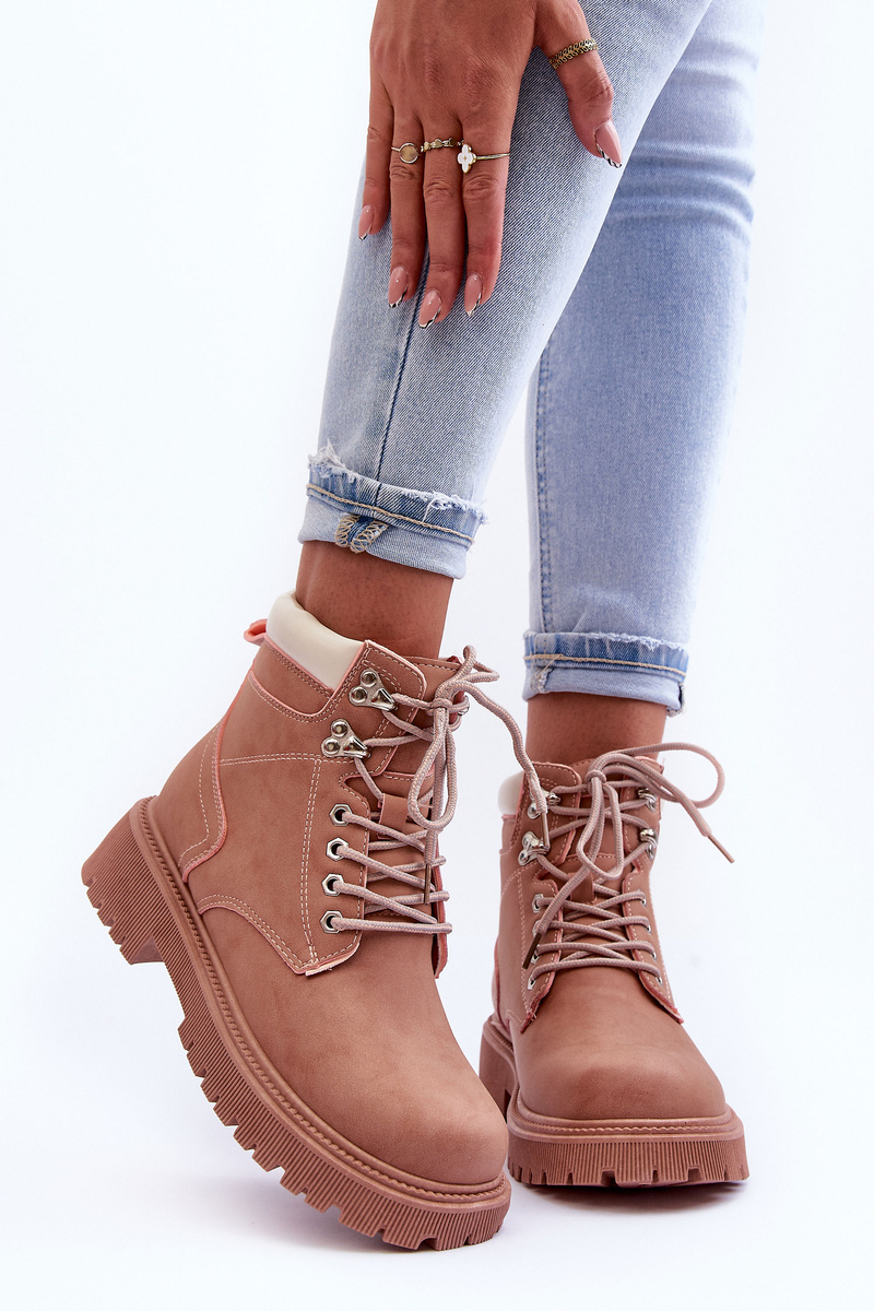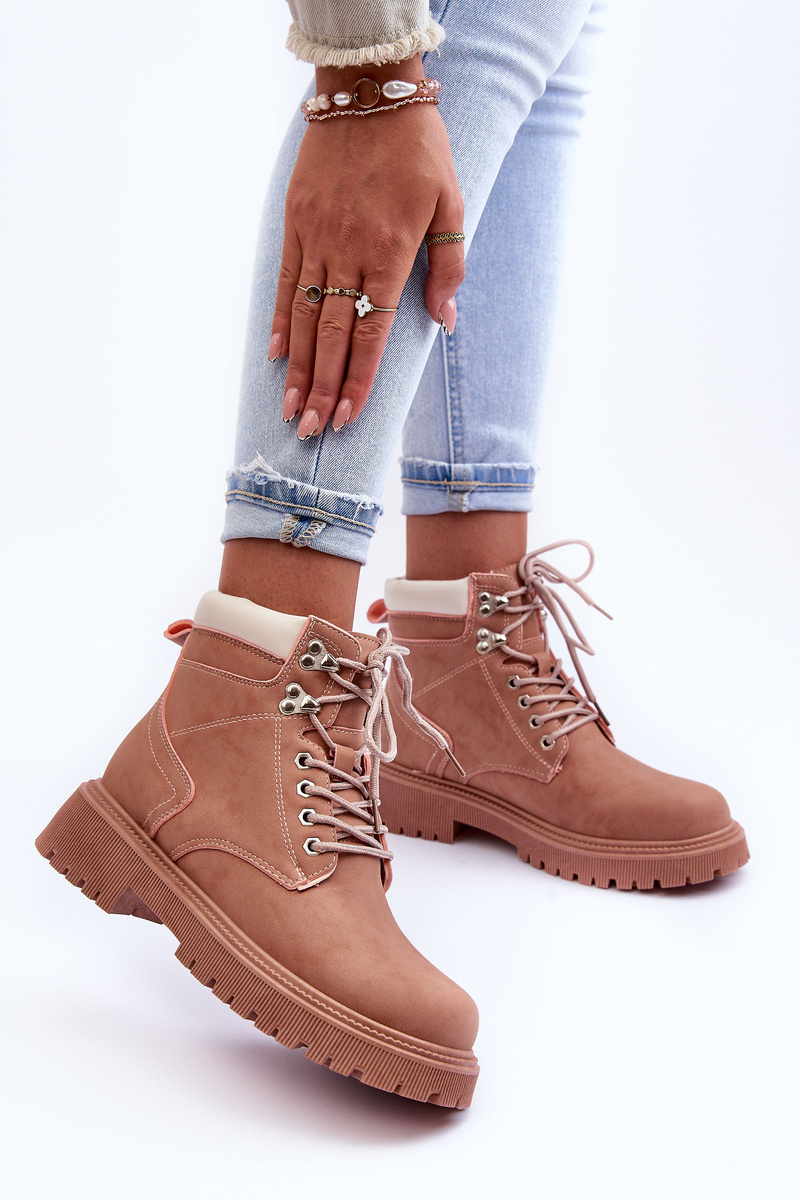 Damskie Skórzane Ocieplane Trapery Różowe Poles