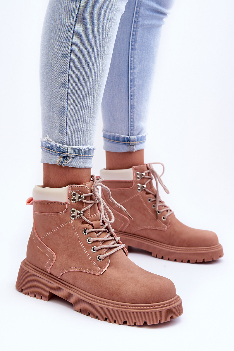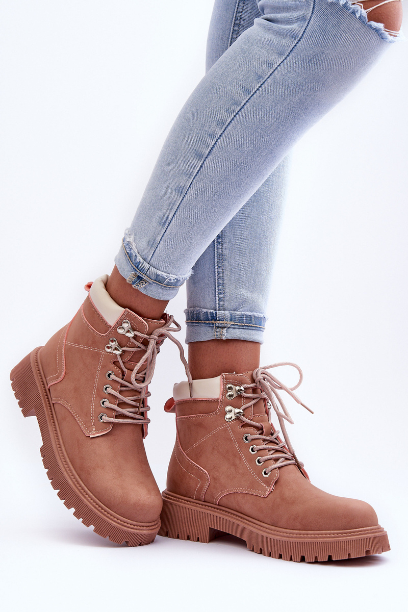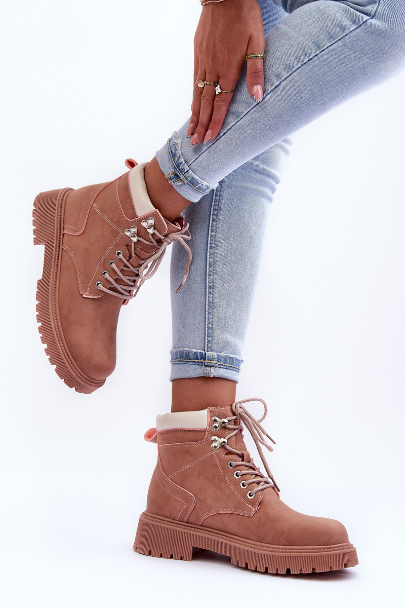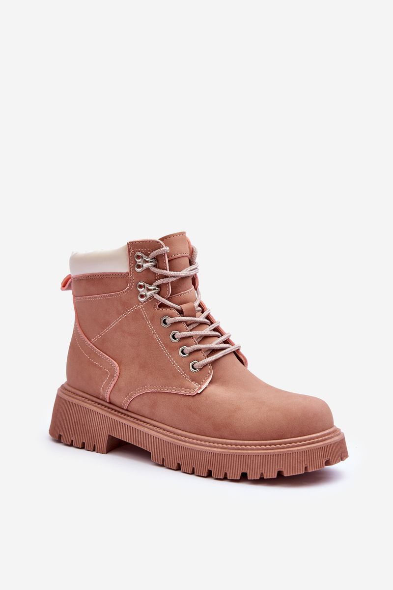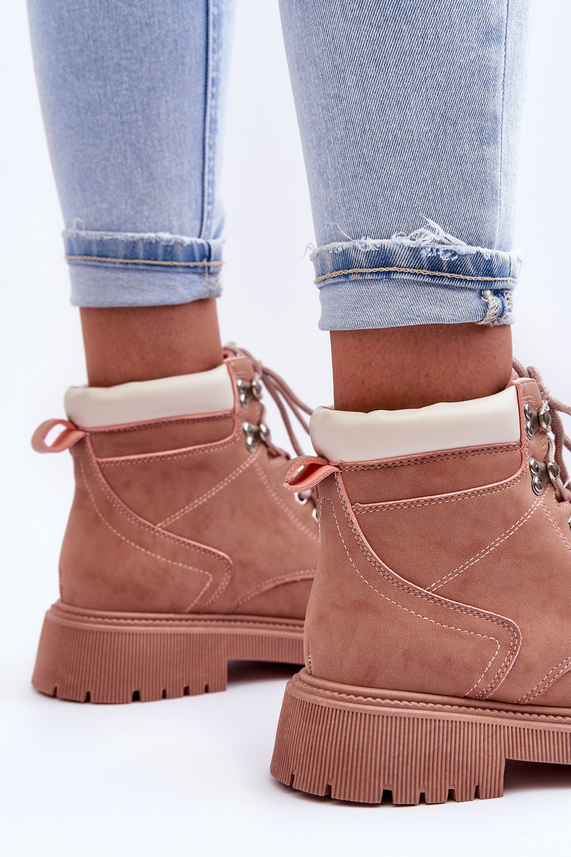 Damskie Skórzane Ocieplane Trapery Różowe Poles