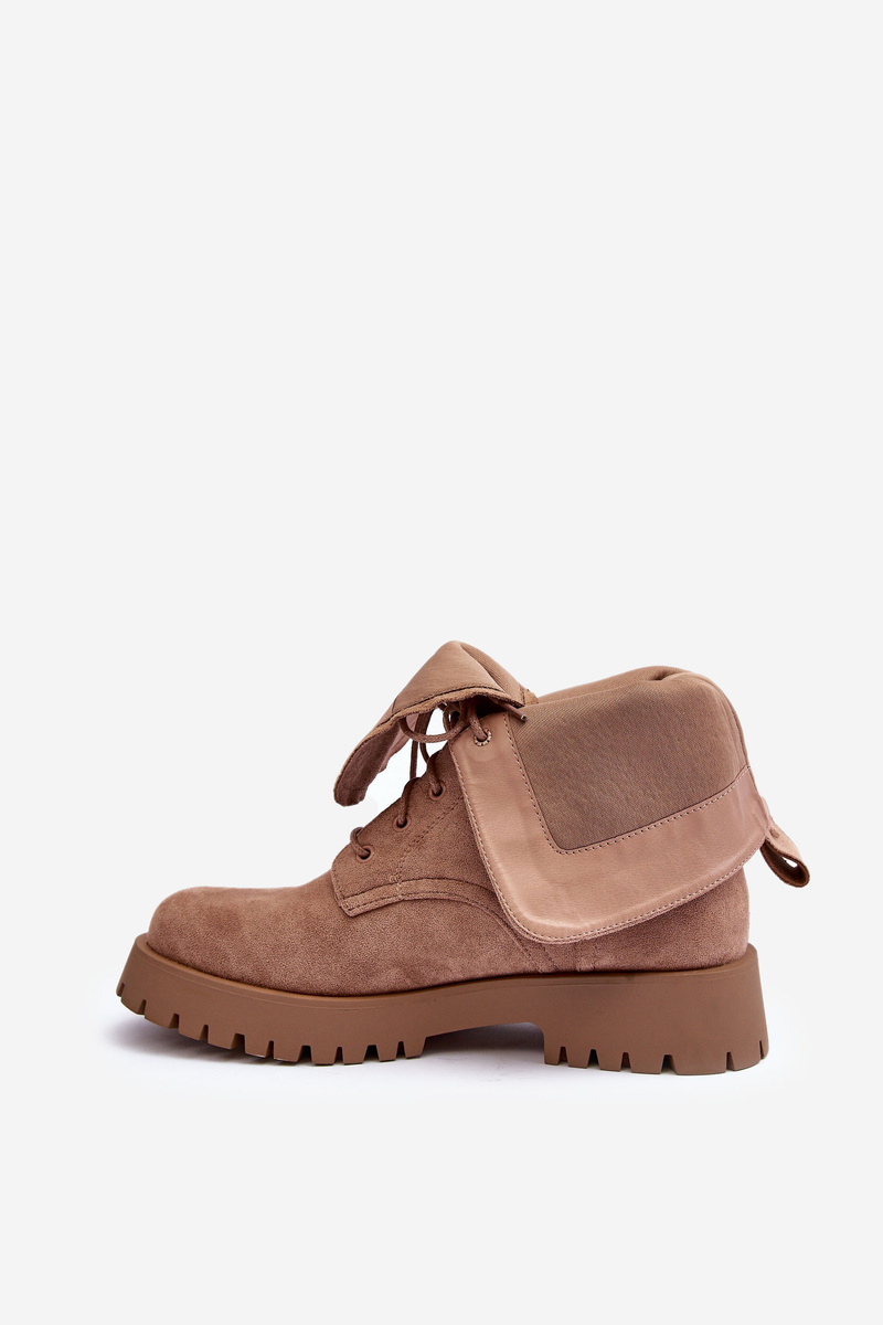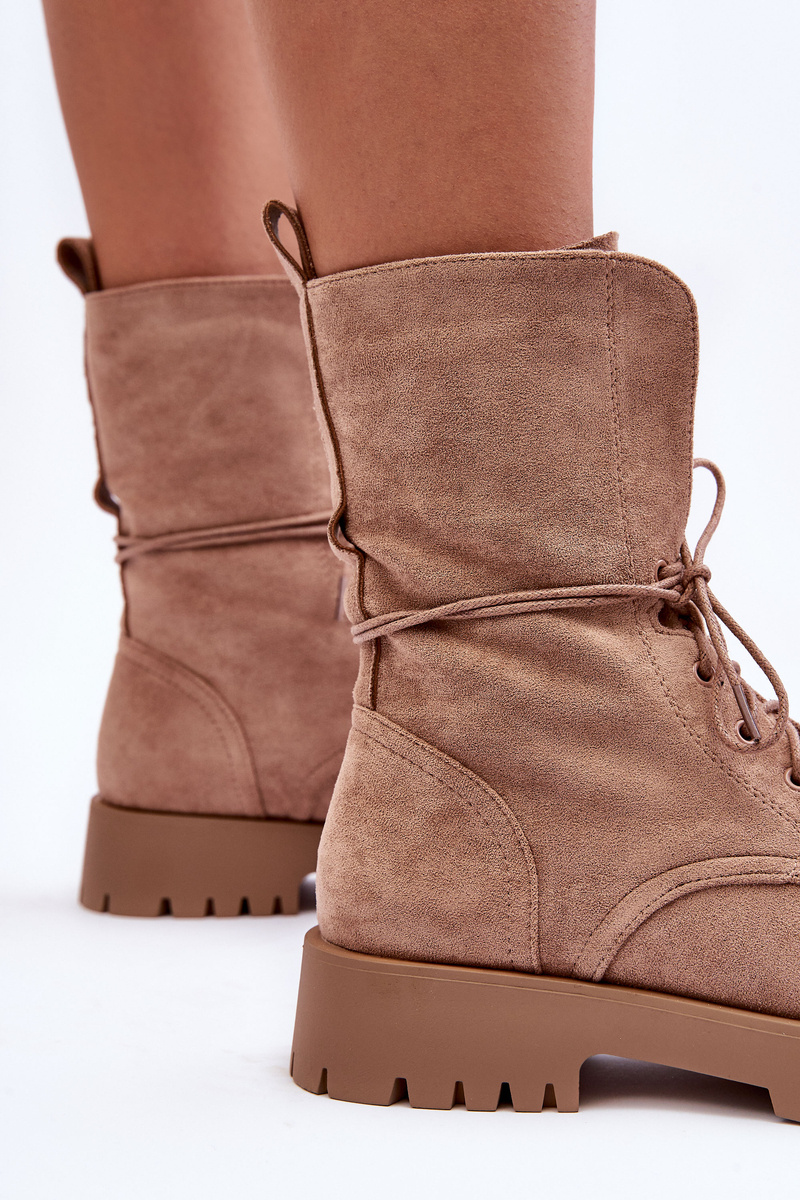 Zamszowe Workery Botki Na Płaskim Obcasie Beżowe Jence