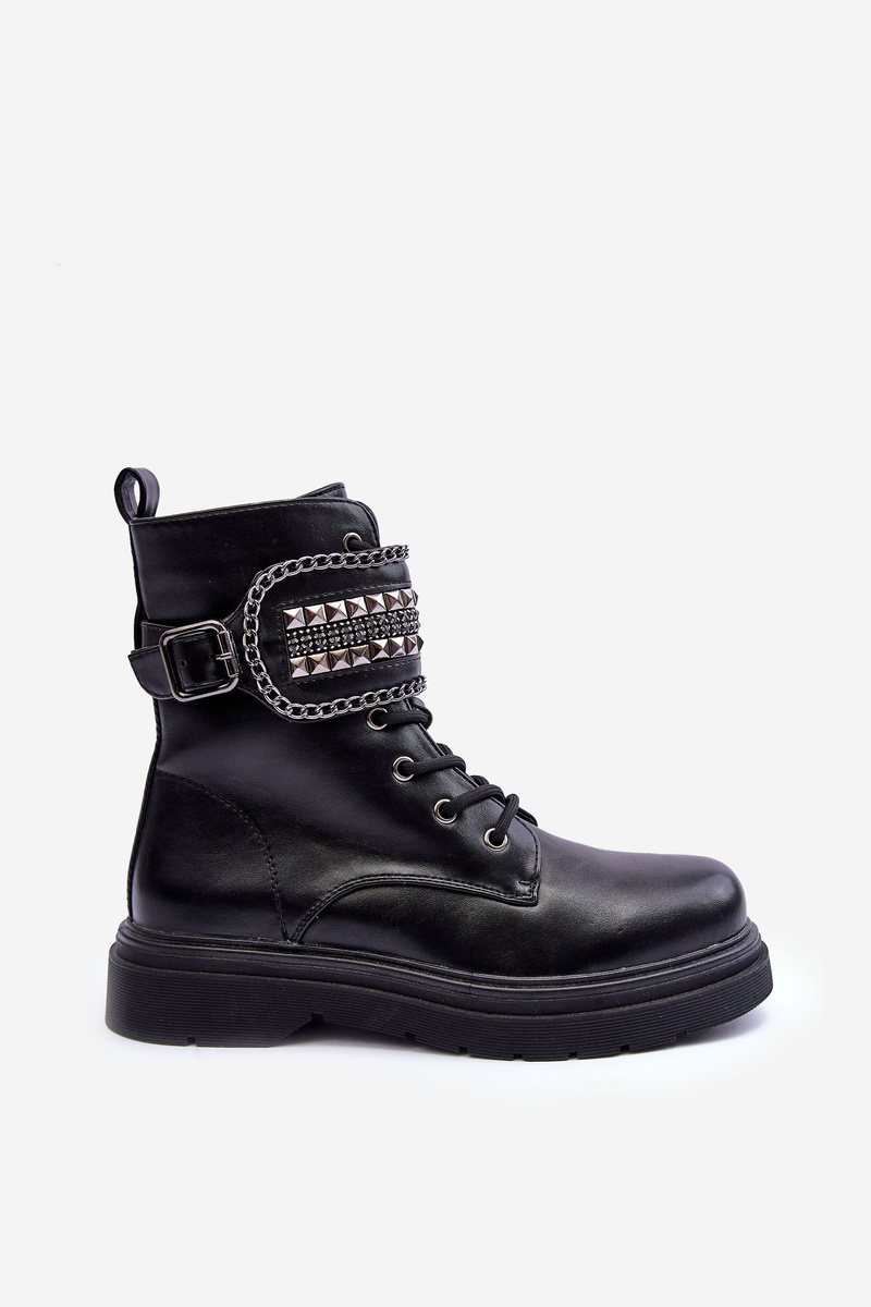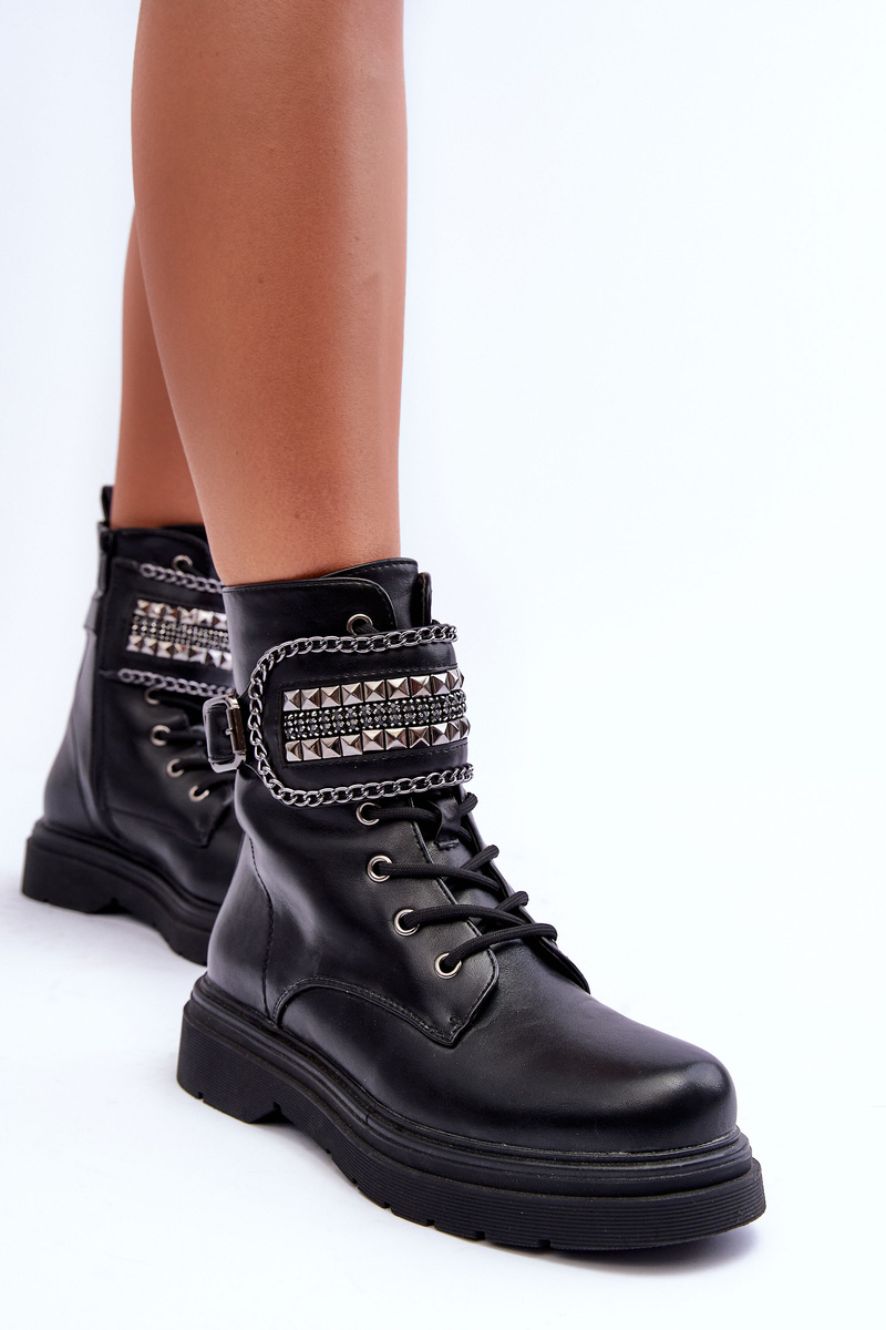 Skórzane Botki Workery Zdobione Ćwiekami Czarne Kongei