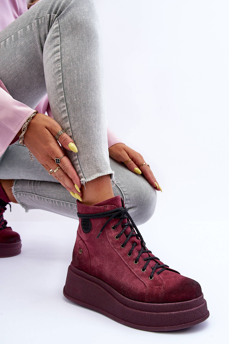 Zamszowe Botki Na Masywnej Platformie Maciejka 06309-23 Bordowe