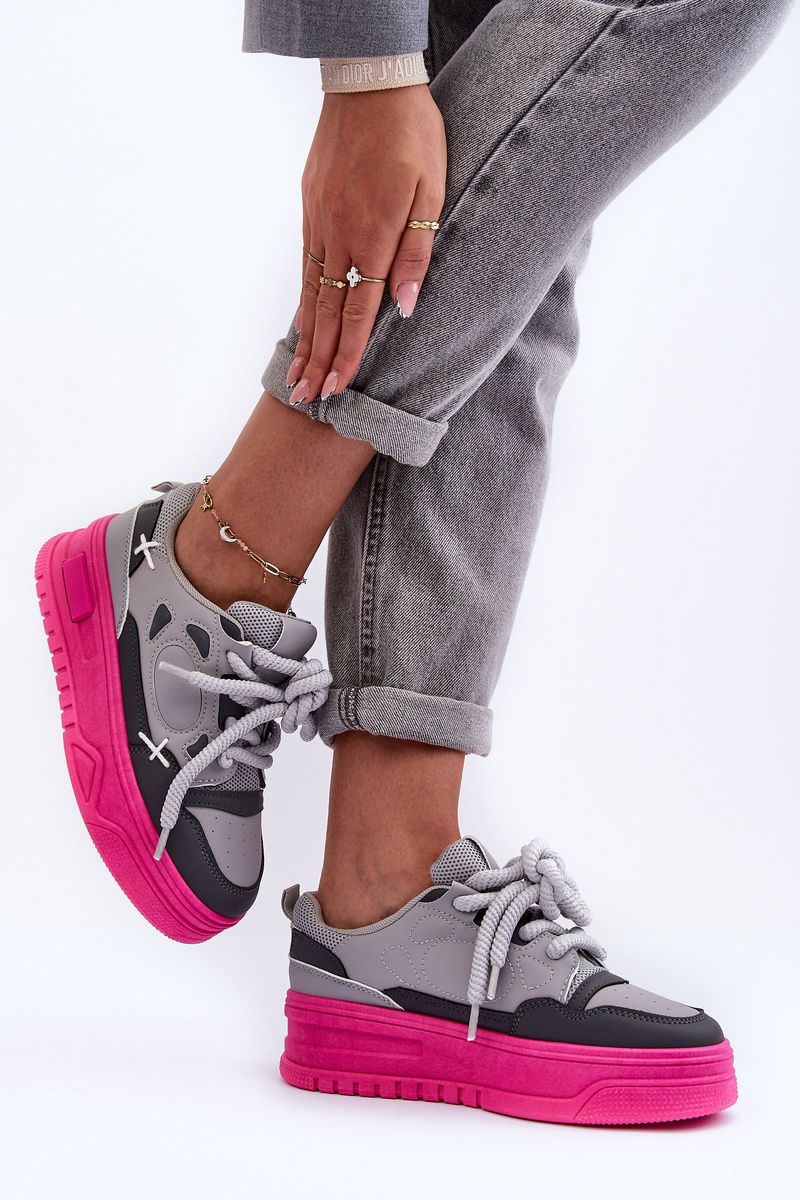 Damskie buty sportowe zostały wykonane z eko skóry. Osadzone na masywnej, gumowej platformie. Model klasycznie sznurowany. Miękka, eko skórzana wkładka zapewni komfortowe użytkowanie obuwia. Te sneakersy z pewnością sprawdzą się w wielu stylizacjach! Przy wyborze rozmiaru prosimy sugerować się tabelą rozmiarów.