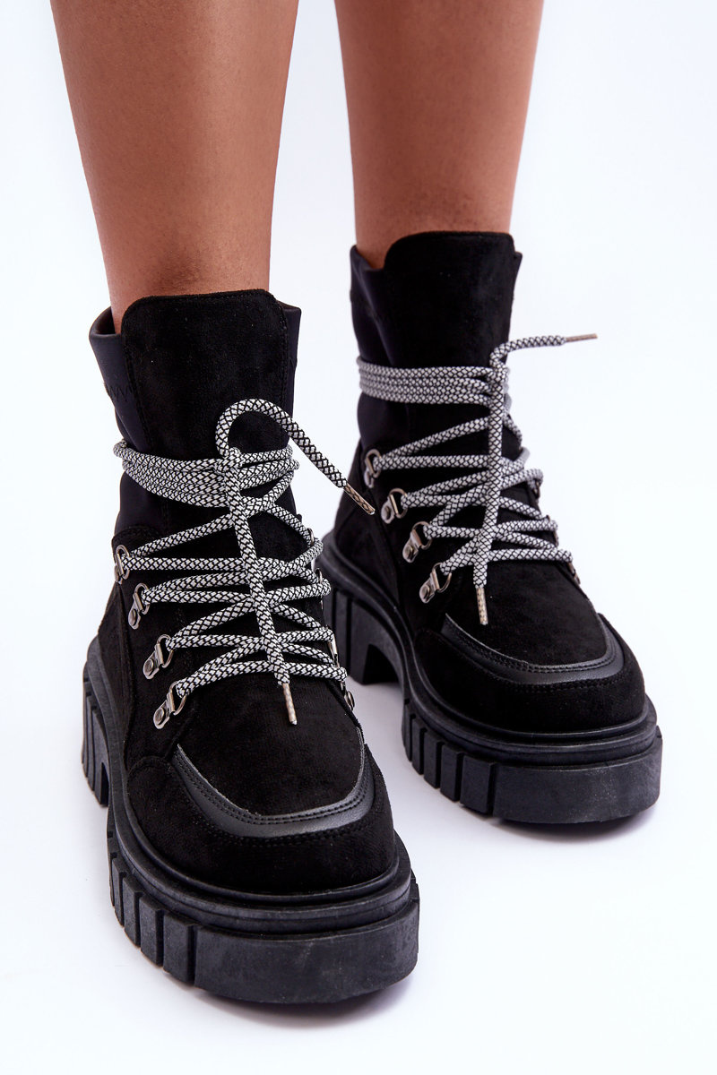 Damskie Zamszowe Botki Sznurowane Czarne Acorn