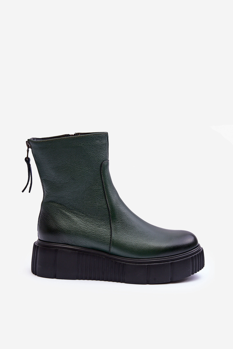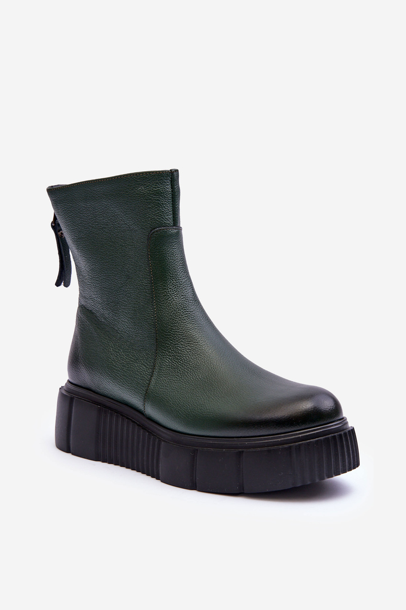Zazoo 60369 Damskie Skórzane Botki Na Platformie Zielone