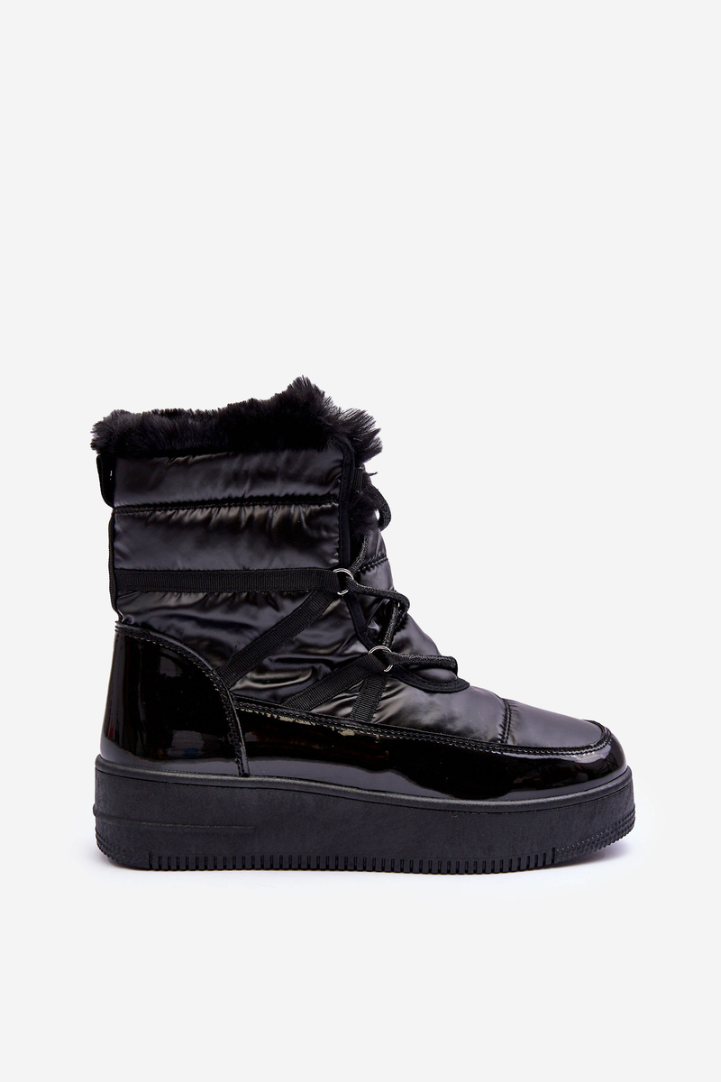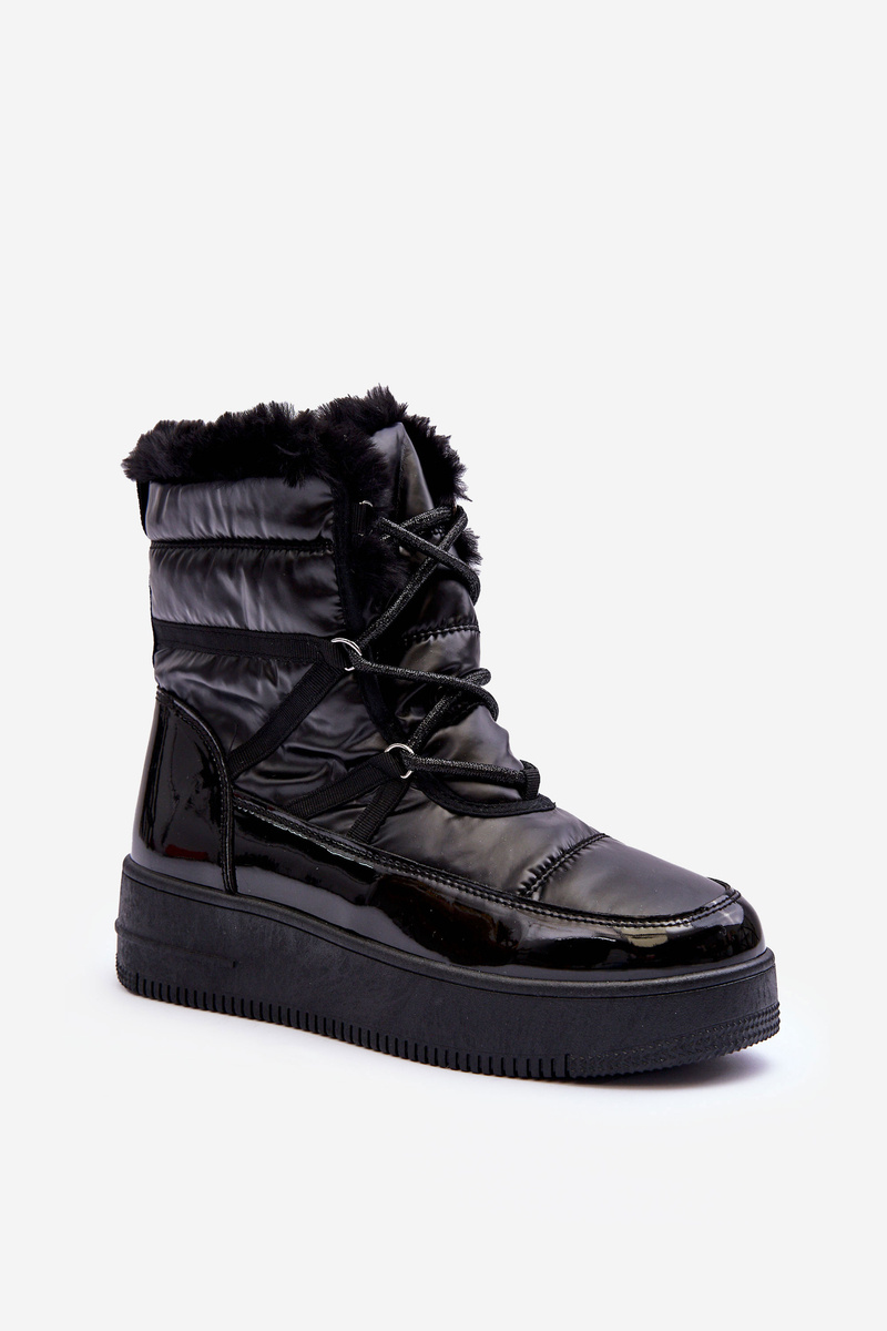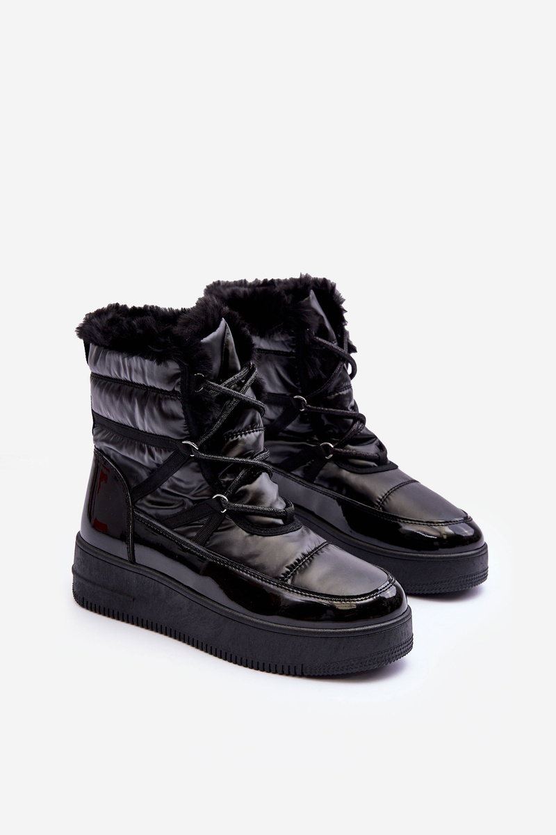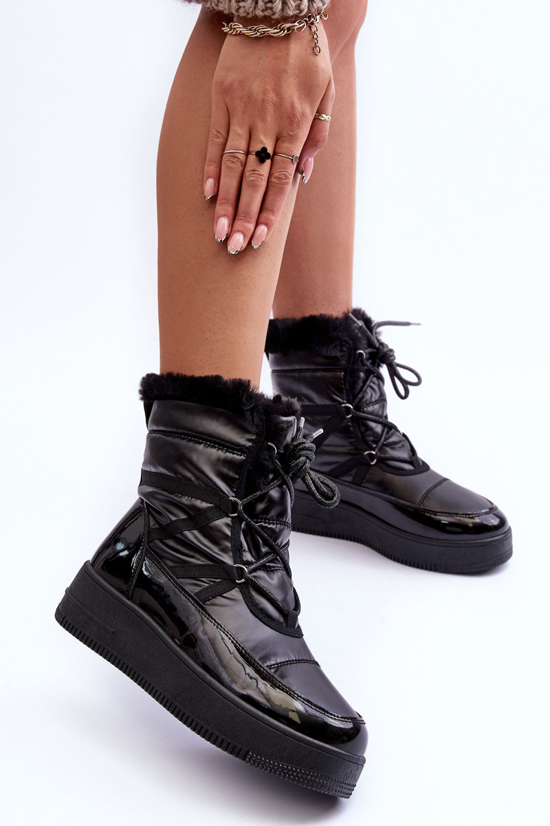 Śniegowce Sznurowane Damskie Z Futerkiem Czarne Lexxina