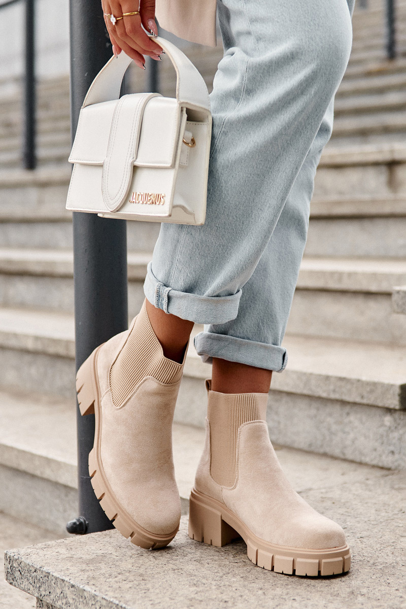 Zamszowe Botki Z Elastyczną Wstawką Beżowe Anyfer